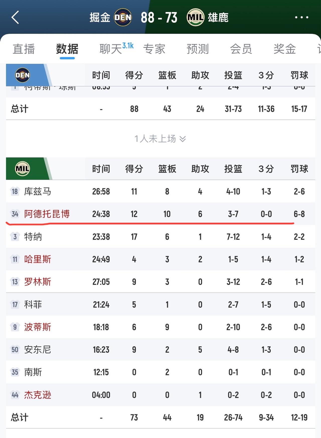 连字母哥也开始消极比赛了?这是要逼着雄鹿主动把他交易走吗? 与掘金的比赛,还是在