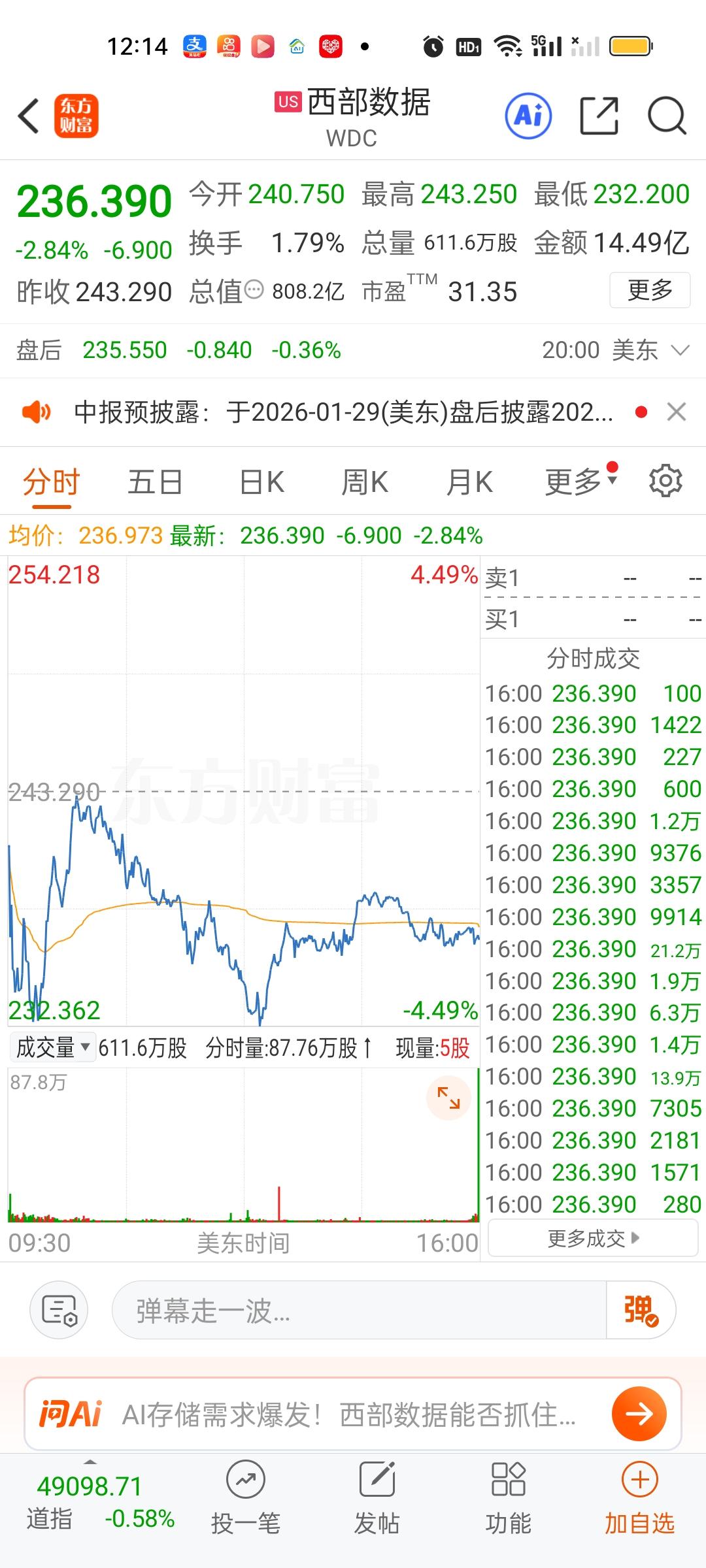 直到收盘英特尔的股价也并未迎来反弹,股价创出2024年8月以来的最大单日跌幅。下跌也传导到了存储芯片板块。闪迪股价也是大跌接近6%。下周就是2026年1月最后5个交易日了,看样子注定不太平了。