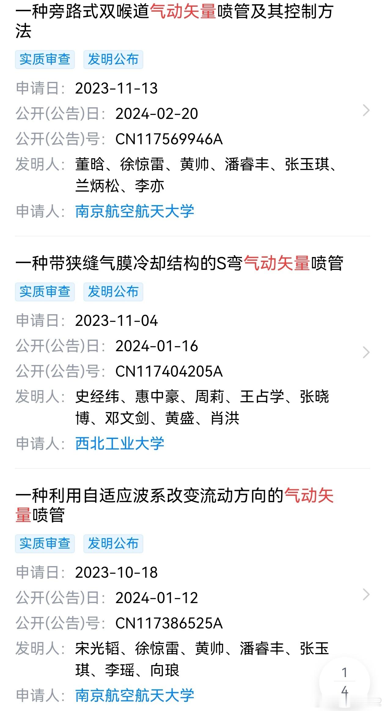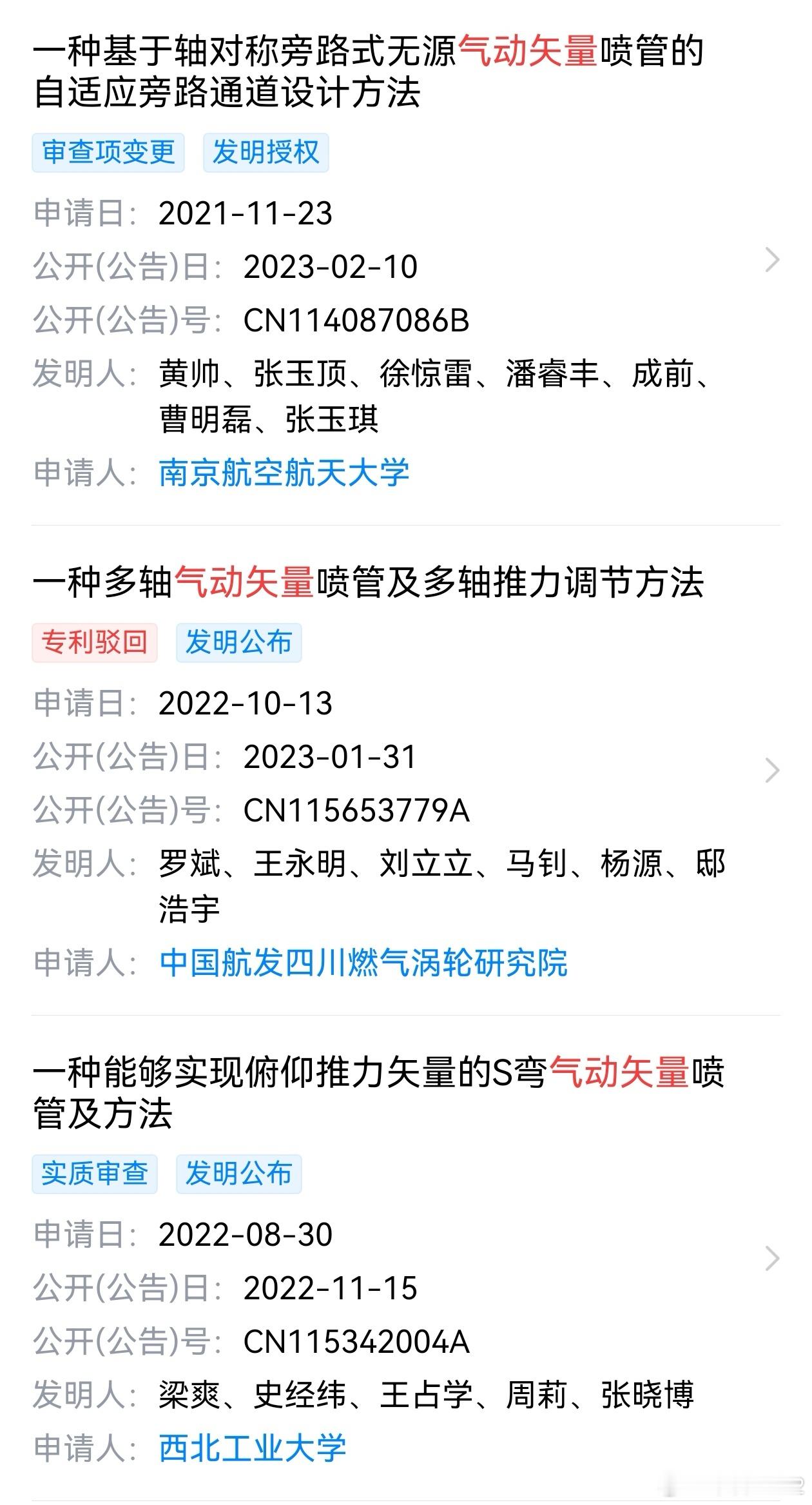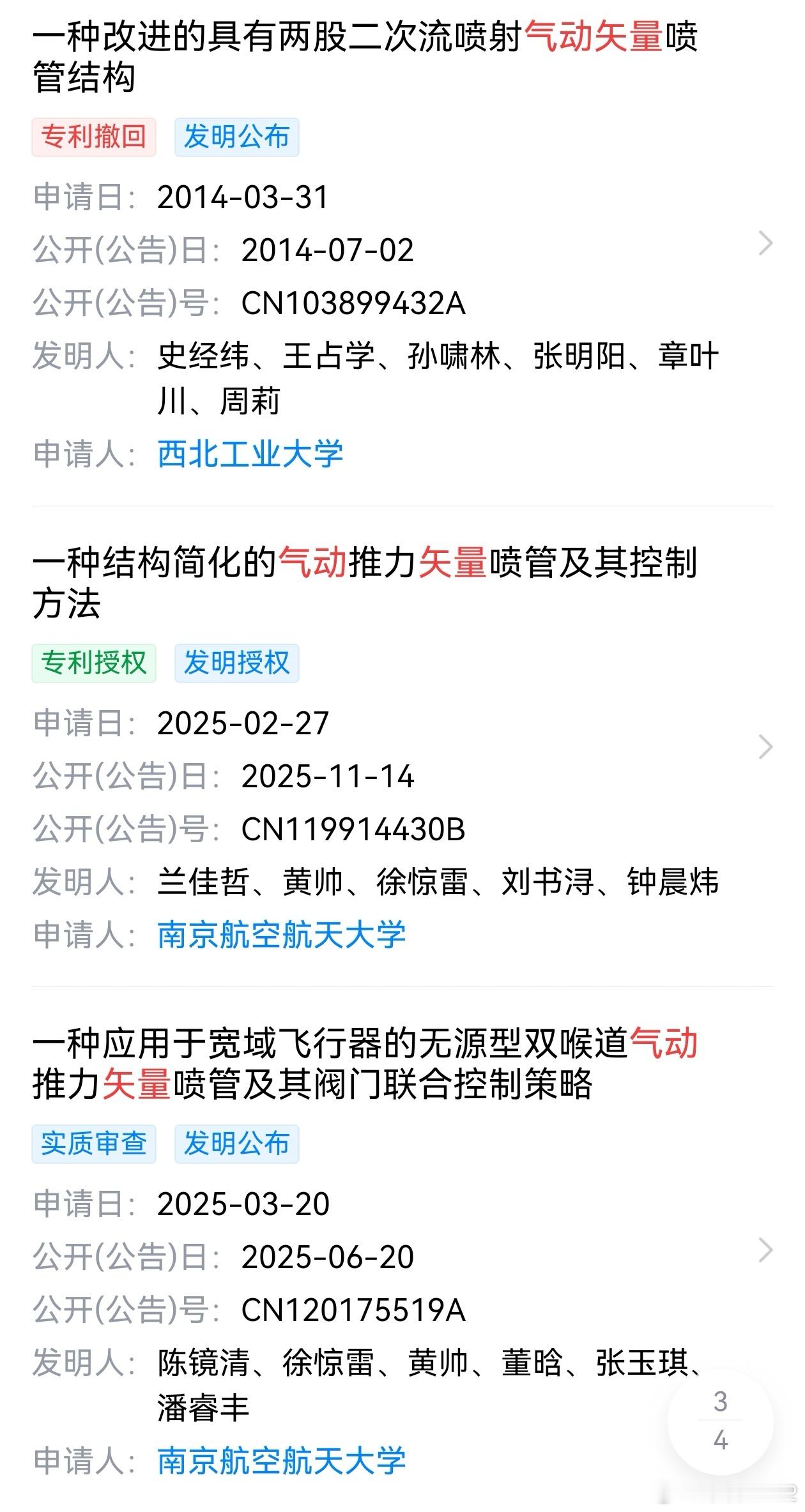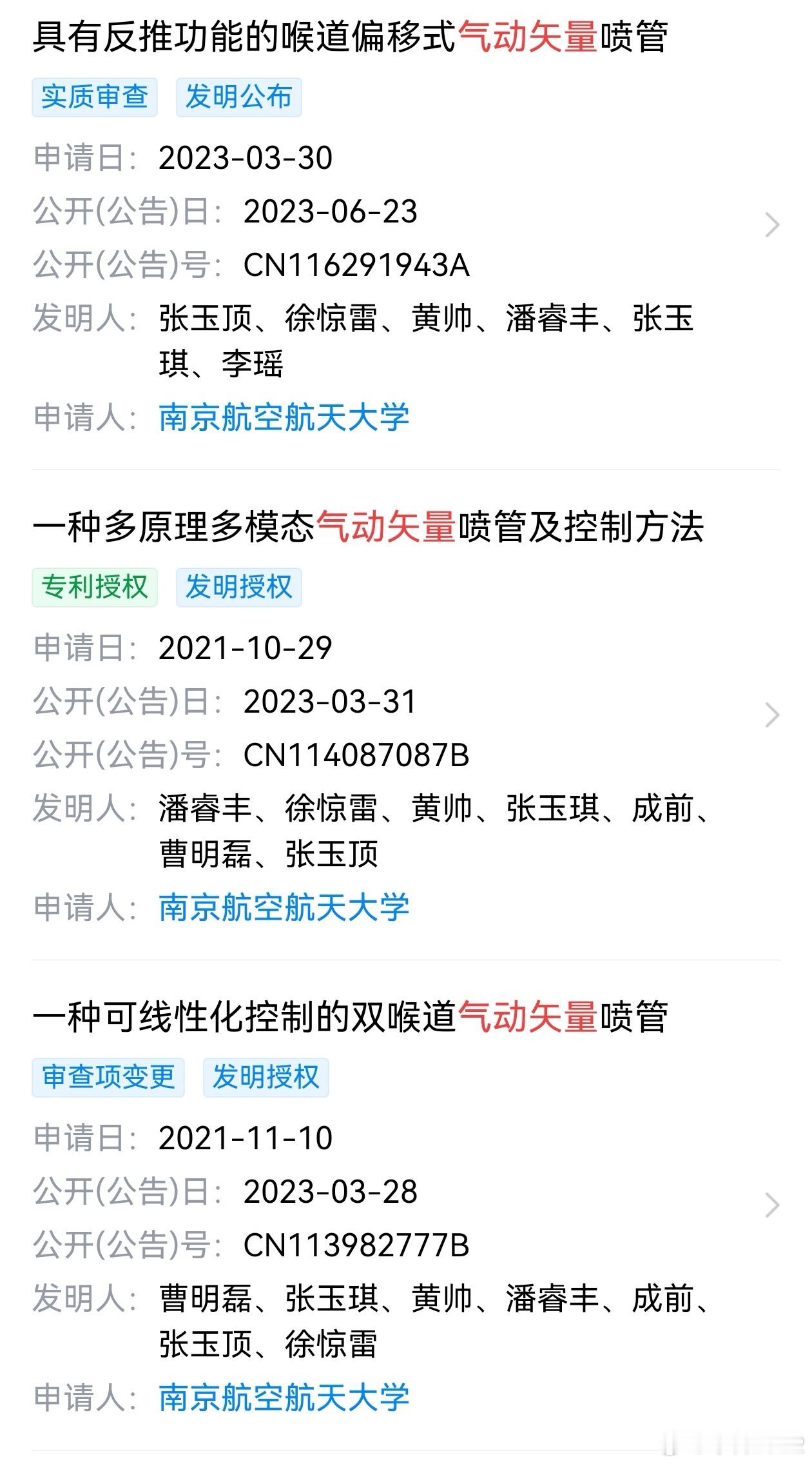 不看不知道,一看吓一跳!昨天我发了南航气动矢量试验成功网页链接,引起较多讨论。今天上午就查了一下相关专利。卧槽,南航的研究太流逼,目前申报的该项专利,南航占了95%以上。其他厂所在搞的二元矢量等,在这边几乎不待见,他们搞的都是飞行器的垂直起降、隐形等各种气动矢量喷管,其中还包括导弹用的。未来飞行器技术,可能真的要看我们了!中国空中力量烽火问鼎计划每天认识一件兵器