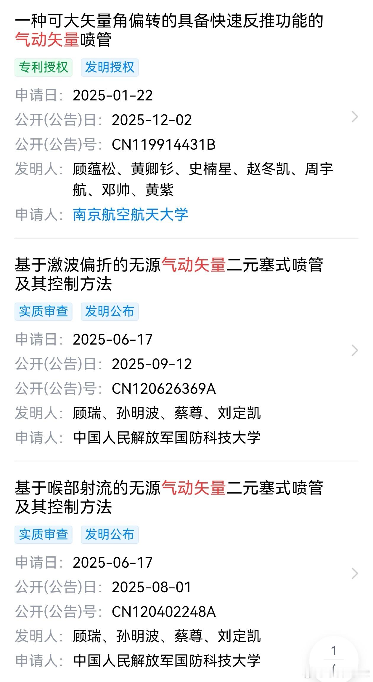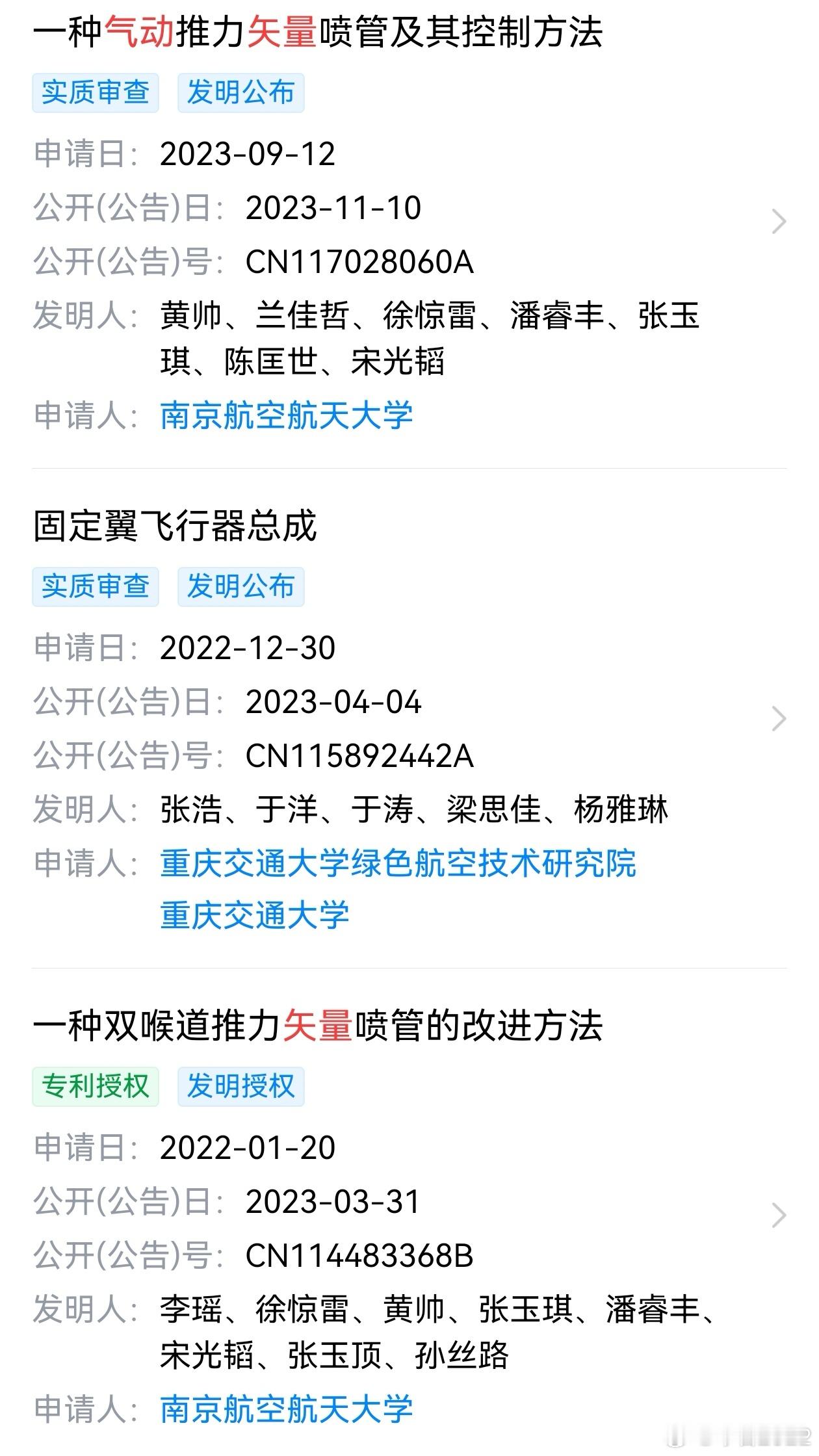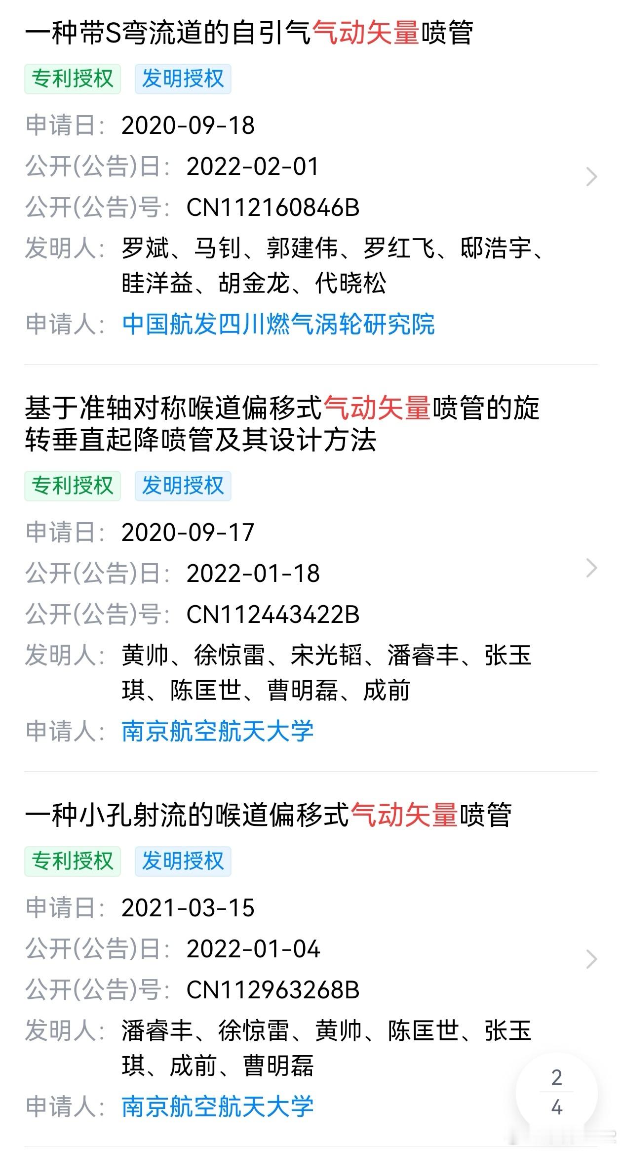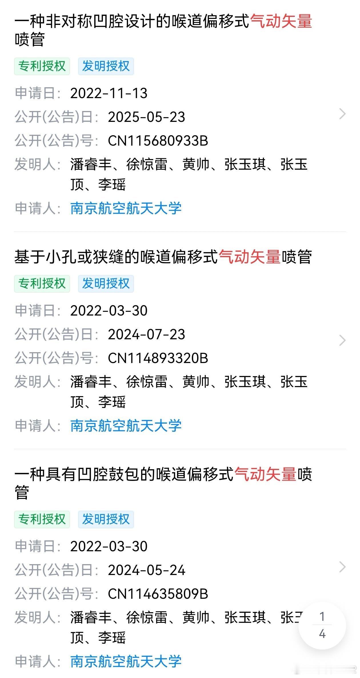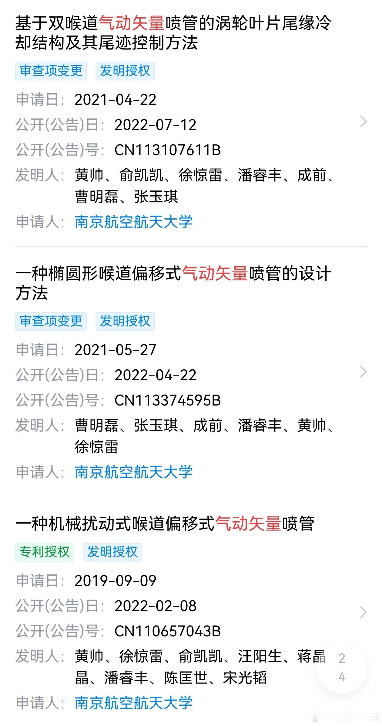 不看不知道,一看吓一跳!昨天我发了南航气动矢量试验成功网页链接,引起较多讨论。今天上午就查了一下相关专利。卧槽,南航的研究太流逼,目前申报的该项专利,南航占了95%以上。其他厂所在搞的二元矢量等,在这边几乎不待见,他们搞的都是飞行器的垂直起降、隐形等各种气动矢量喷管,其中还包括导弹用的。未来飞行器技术,可能真的要看我们了!中国空中力量烽火问鼎计划每天认识一件兵器