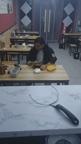 山东济南一家专门经营“河北沧州羊肠子”的小餐馆里。 晚上9点多突然来了一位来自印度的外国小伙? 他说自己是来中国留学的,听同学说这里的“羊肠子”汤挺好吃? 所以今天是专门过来品尝的。 他要了一碗羊肠汤和几个烧饼。 一边吃一边和别人用手机视频聊天。 看起来聊的特别的投入。河北羊肠子