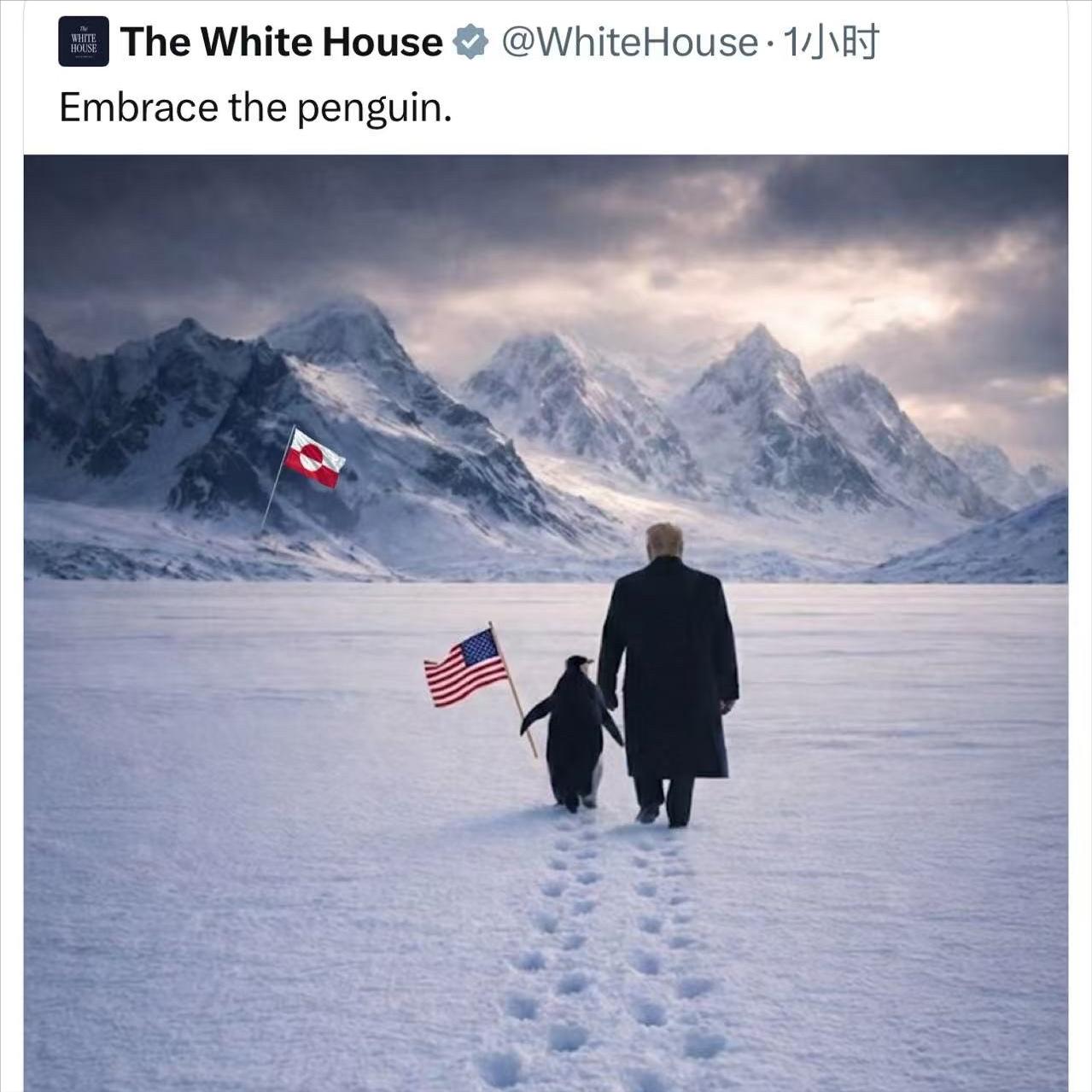 特朗普又闹了个大笑话。 白宫刚刚发了一张官方P图,特朗普牵着企鹅,企鹅拿着星条旗,走在茫茫的格陵兰岛雪地里,留下脚印一串串。 看上去画面很温馨,像极了一部政治童话片的海报。 但稍微有点地理常识的人都知道,企鹅是生活在南极的,北极根本没有企鹅。 格陵兰岛位于北极圈以内,属丹麦王国领土,企鹅在那边出现的概率,大概和在北京动物园门口遇到长颈鹿一样小。 所以,当这张图一出,网络上直接炸裂。 丹麦网友坐不住了,连格陵兰本地的政客都发文吐槽,说“我们这儿没有企鹅,特朗普先生可能搞错了”。 美国网友也没闲着,一边嘲笑特朗普团队地理知识堪忧,一边把这张图P成各种版本,有的还把企鹅换成袋鼠、考拉、甚至是外星人,讽刺意味拉满。 这不是特朗普第一次跟格陵兰岛“杠上”了。 早在2019年,他就公开表示想“买下”格陵兰岛,说这是美国的“战略资产”。 当时丹麦政府的回应非常直接:格陵兰不是商品,不卖。 特朗普听完气得取消了原定访问丹麦的行程,还在社交媒体上发了一张P图,把自己大厦P在了格陵兰冰盖上,底下配了一句“我保证不会这样做”。 那波操作已经让全世界笑了一轮,没想到几年过去,他又整了个更抽象的。 这次的“企鹅事件”,虽然看上去像是一次搞笑的社交媒体事故,但背后其实还是老问题:特朗普始终对格陵兰岛念念不忘。 他不是开玩笑,他是真的想拿下这块地。在他眼里,格陵兰岛是战略重地。 首先,它地处大西洋和北冰洋之间,是北极地区最关键的地理位置之一,谁掌握了格陵兰,谁就相当于在北极有了前哨基地。 其次,岛上资源丰富,尤其是稀土、铀矿、铁矿储量可观,这对美国来说是巨大的诱惑。 再加上气候变暖使得北极航道逐渐开放,格陵兰的地缘价值一下子被大大推高。 而特朗普作为一个典型的“商人总统”,对地缘政治的理解也带有强烈的“买卖”思维。 他曾公开说过:“如果别人拥有的东西对我们有好处,我们可以考虑买。” 这句话听起来像是资本家的直白宣言,也确实反映了他对格陵兰的执念。 只是他没想到,丹麦人并不吃这套。 更重要的是,格陵兰岛虽然属于丹麦,但拥有高度自治权。 岛上的居民主要是因纽特人,他们有自己的议会和政府,对是否“出售”家园自然说了算。 而格陵兰的民族自觉也很强,他们正在努力争取更多的自治权,甚至是未来的“完全独立”。 特朗普当年提议买岛,被当地议员直接怼回去:“我们不是商品,也不是殖民地,格陵兰人的未来由我们自己决定。” 从国际法的角度来看,特朗普想买岛的想法根本站不住脚。 一个国家不能强买另一个国家的领土,尤其是这种带有自治地位的地区。 即便是美国也不能随意“买下”一个岛屿,这种思维早就过时了。 特朗普的做法不仅让丹麦不满,也让很多欧洲国家警惕:美国是不是还活在冷战思维里?是不是还以为可以用金钱控制地缘格局? 而这次的企鹅事件,更像是特朗普“执念”的一种象征性表达。 他可能想营造一种“我与格陵兰亲密无间”的形象,用幽默和“温情”的画风来重新包装他对格陵兰的兴趣。 但问题是,连最基本的地理常识都搞错了,这种“温情”反而变成了笑柄。 更有网友讽刺:“要是特朗普真去了格陵兰,还指不定要在雪地里找袋鼠呢。” 其实从传播角度来看,特朗普团队的这波操作也有其背后的策略。 特朗普一向擅长用话题制造舆论,用笑料转移焦点。 尤其是在他谋求再次参选的背景下,任何能吸引眼球的内容,都可能被他团队包装成“政治武器”。 这次的企鹅图,虽然被广泛嘲笑,但也确实让他再次登上了各大媒体头条,提升了曝光度。 但问题也来了。 这种“娱乐化政治”的操作,固然能收割短暂的关注度,却也在不断消耗公众的信任。 政治不是脱口秀,治理不是表演。 如果一个领导人连格陵兰和南极的区别都搞不清楚,又怎能指望他在国际事务中做出理性决策? 更何况,这不是特朗普第一次因为地理知识被全网嘲笑了。 他曾经在一次飓风简报会上,拿出一张自己画圈的地图,硬说飓风“多里安”会影响阿拉巴马州,结果被美国国家气象局打脸说“根本不会”。 还有一次,他在演讲中把比利时说成是“一个美丽的小城市”,全场都懵了。 这些“笑话”加在一起,已经不只是语言失误那么简单,而是反映出其团队在基础认知和信息审核上的严重问题。 参考:环球网 ——白宫发特朗普在格陵兰岛牵企鹅AI图,网友“惊呆”:格陵兰岛没有...