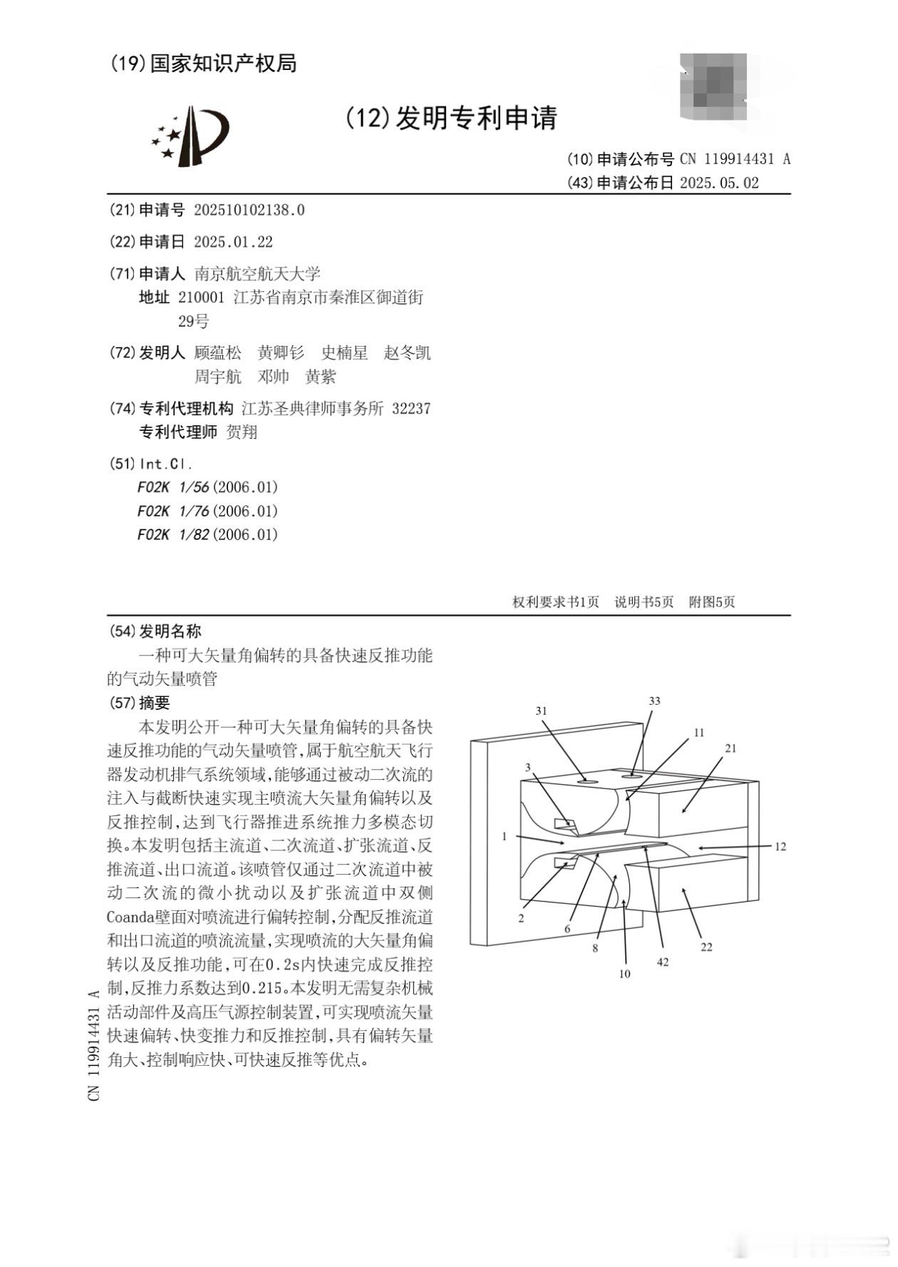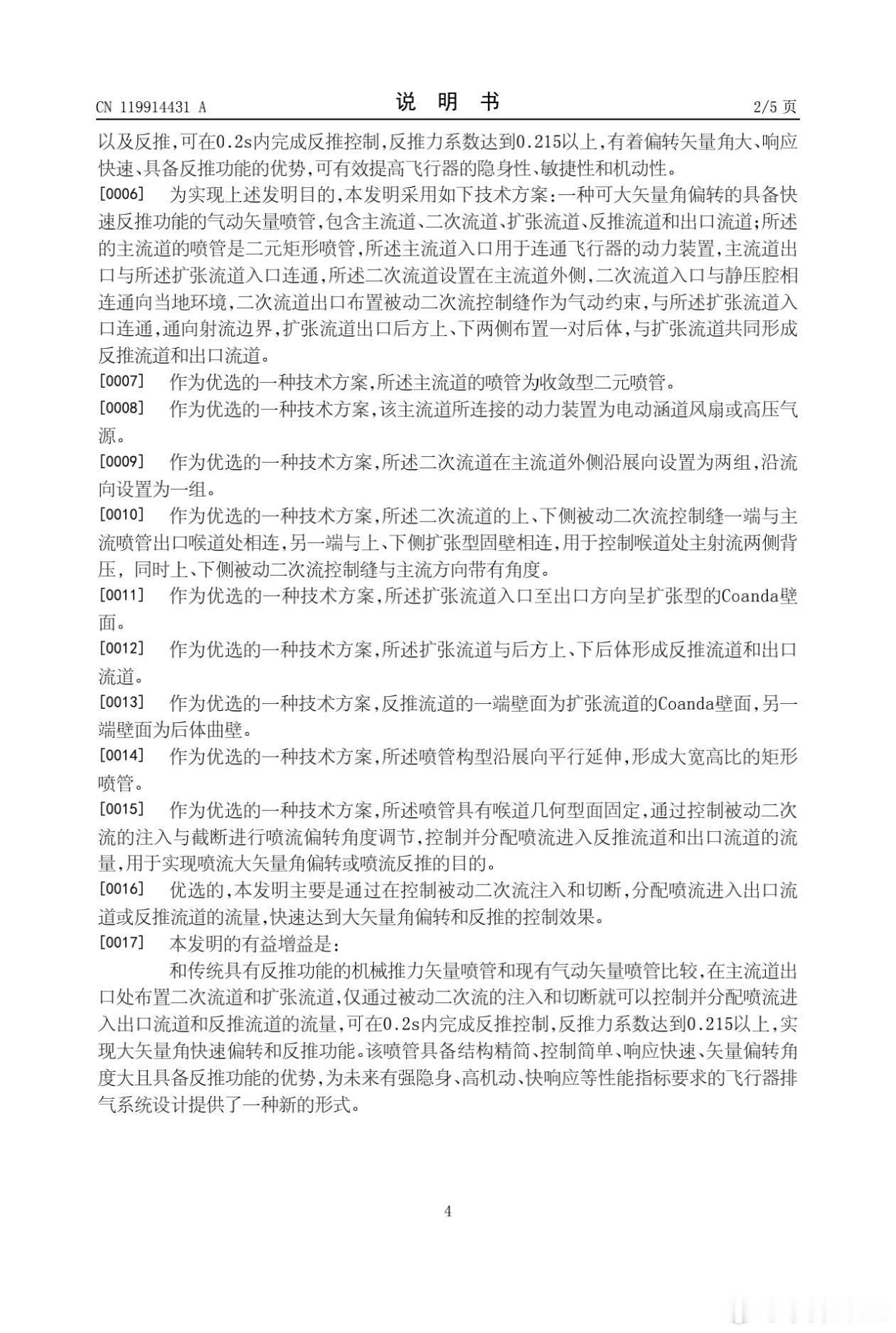 牛逼👍太牛逼!《一种可大矢量角偏转的具备快速反推功能的气动矢量喷管》昨天这篇网页链接中图2,应该就是这个了。🔻结构组成:包含主流道(二元矩形喷管,可选收敛型)、二次流道(主流道外侧,含被动二次流控制缝)、扩张流道及反推流道(出口后方上、下后体与扩张流道共同形成)。🔻工作原理:通过控制被动二次流的注入与切断,调节喷流进入出口流道和反推流道的流量,实现矢量偏转角度调节与反推功能。🔻技术优势①响应速度快:0.2秒内完成反推控制,反推力系数达0.215以上。②矢量偏转角度大,具备反推功能,可提升飞行器隐身性、敏捷性和机动性。③结构精简:无需复杂机械传动机构,通过气动约束实现流量分配,降低系统复杂度和维护难度。■为未来强隐身、高机动、快响应的飞行器排气系统设计提供新形式,适用于先进战斗机、无人机等对机动性和隐身性有严苛要求的飞行器推进系统。中国空中力量每天认识一件兵器烽火问鼎计划
