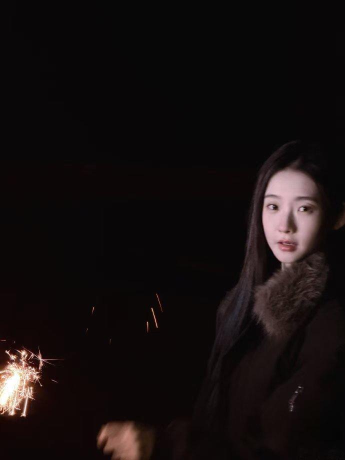 张艺凡美成大头贴 张艺凡于海边夜色里,仙女棒轻点,自带柔光美感,照片像CCD滤镜下的大头贴,美到极致!