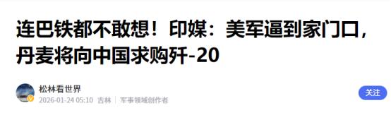 连巴铁都不敢想!印媒:美军逼到家门口,丹麦将向中国求购歼-20 当地时间 1 月 21 日,印度 “Jetline Marvel” 网站抛出个炸锅消息:因为北约没法保障格陵兰岛安全,丹麦正琢磨跟中国搞防务合作,甚至要掏钱买歼 - 20 隐形战机和歼 - 10C 战机,目的是对抗美军 F-35,还想给美国递话 “盟友关系靠不住”。 要聊这事儿,得先搞懂中国卖武器的规矩。中国对外军售历来有三条铁律:得有助于接收国的正当防卫,不能破坏地区安全,还不能干涉别国内政。更关键的是,中国只卖主权国家,而且尖端装备的出口管控严得很。 歼 - 20 是什么级别?那是跟美国 F-22 同级的第五代隐形战机,属于国之重器。迄今为止,中国出口的最先进战机是歼 - 10CE,就算是这款,也得经过层层审批,更别说歼 - 20 了。人民网去年的报道里说得很明白,中国军售是从低端往中端走,高端装备根本不在出口清单里。 退一万步说,就算丹麦真来买,中国也不可能卖。且不说这会彻底得罪北约和美国,破坏北极地区的战略平衡,单就 “三项原则” 也通不过 —— 丹麦买歼 - 20 是为了 “对抗美军”,这明显是激化矛盾,根本不是 “正当防卫”。 丹麦作为 1949 年就加入北约的老牌成员国,身上捆着好几道 “紧箍咒”。北约有个不成文的规矩,成员国的防务装备尽量要 “互联互通”,方便协同作战。现在北约国家的主力战机不是 F-35 就是欧洲 “台风”,丹麦自己也早就计划采购 F-35,要是突然换成歼 - 20,根本没法跟盟友配合作战。 更重要的是,土耳其的例子就在眼前。土耳其当年想买俄罗斯的 S-400 防空系统,直接被美国逼得退出 F-35 项目,还遭了制裁。丹麦要是敢买中国的歼 - 20,后果只会更严重,美国能立刻冻结对丹麦的军事援助,北约甚至可能取消它的情报共享资格。 丹麦犯得着冒这风险吗?根本不划算。格陵兰岛的矛盾再大,也就是跟美国讨价还价的筹码,真要闹到退出北约、买中国战机的地步,那是自毁前程。印度媒体说 “联盟关系日益破裂”,纯属夸大其词,北约内部再闹矛盾,也没到成员国跳反的份上。 既然漏洞这么多,印度媒体为啥还要编这故事?说白了,就是想借这事儿渲染两个情绪:一是 “北约要散架了”,二是 “中国武器已经能挑战美国了”。这两种说法背后,其实是印度媒体对国际格局的刻意解读。 一方面,印度一直想在北极事务中插一脚,所以特别关注格陵兰岛的动态,巴不得美欧闹得越凶越好,自己好浑水摸鱼。另一方面,印度媒体总爱炒作 “中美对抗”,好像全世界都得在中美之间选边站,这次编丹麦买歼 - 20 的故事,就是想把这种 “对抗叙事” 做实。 但现实根本不是这样。中国军售向来是 “以戈止武”,从来不会主动挑动矛盾。丹麦跟美国的分歧,本质上是盟友间的利益之争,最后大概率会通过谈判解决,就像美国撤回关税威胁那样,用 “创可贴式” 的协议暂时平息争端。印媒想靠编故事博眼球,实在是太低级了。 要是丹麦真觉得现役战机不够用,可选的方案多了去了,压根轮不到中国的歼 - 20。首先可以加速采购 F-35,美国为了稳住丹麦,说不定还能给点优惠;其次能买欧洲盟友的 “台风” 战机,政治上没任何风险;就算想找非美国家,还有瑞典的 “鹰狮” 可选,性能不错还能兼容北约系统。 退一万步说,就算丹麦真想买中国战机,也该先看歼 - 10CE,这款战机已经出口巴基斯坦,性价比比 F-16 高得多,4000 万美元一架的价格也比 F-35 便宜一半多。但就算是歼 - 10CE,丹麦也没理由买,毕竟跟北约体系不兼容,后续维护都是麻烦事。 所以说,印度媒体这则消息,从头到尾都是漏洞。格陵兰岛的矛盾是真的,但跟买歼 - 20 没关系;中国卖武器有规矩,歼 - 20 根本不出口;丹麦作为北约成员国,也不可能冒天下之大不韪跳反。这事儿说白了,就是印度媒体为了流量编的 “地缘闹剧”。