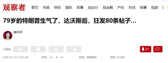 特朗普彻底破防!连发80贴泄愤,只因“取代联合国”成了笑话 1 月 23 日美国政坛这出大戏,把这句话演得明明白白。79 岁的特朗普在社交平台上撒泼打滚,24 小时狂发 83 条帖子,从欧洲骂到美洲,从司法系统喷到新闻媒体,活像个输不起的孩子。 这一切的导火索,就是他心心念念要 “取代联合国” 的 “和平委员会”,硬生生从吹嘘的 “全球盛宴”,办成了只有十多个小国捧场的 “冷餐会”。 这事得从特朗普的野心说起。早在去年 9 月,他就借着加沙冲突抛出 “和平委员会” 的幌子,嘴上说要解决巴以问题,暗地里却在章程里动了歪心思,不仅没提 “加沙” 俩字,还给自己安了个 “终身主席” 的头衔,甚至规定交 10 亿美元就能当 “永久会员”。 到了 1 月 20 日,他干脆在白宫记者会上挑明:“联合国可以留着,但这委员会说不定能取而代之”。那架势,仿佛新的 “世界话事人” 宝座已经到手。 为了撑场面,美国给 60 多个国家发了邀请,还吹牛皮说 “至少 35 国肯定来”。结果 1 月 22 日达沃斯论坛的签字仪式上,场面尴尬到能抠出三室一厅。 法国总统马克龙直接拒绝参会,德国总理默茨更绝,签字前几分钟还在同一会场演讲,见仪式要开始,扭头就走。最终凑齐的签字代表就十多个,连以色列都磨磨蹭蹭,直到最后才不情不愿加入,而之前喊着要参加的白俄罗斯压根没露面。 更重要的是,这已经是特朗普在达沃斯的第二记闷棍。前一天他演讲时重提 “要买格陵兰岛”,还把 “格陵兰” 和 “冰岛” 混为一谈,台下笑声比掌声还大。 本想靠 “和平委员会” 扳回面子,没想到成了更大的笑话。巴西总统卢拉看得通透,直接戳穿:“这就是特朗普想自己建个新联合国,全由他说了算”。 回到酒店房间,老特彻底绷不住了。美国东部时间 1 月 22 日上午 10 点 38 分,他的社交账号突然 “炸了锅”:短短两小时发了 51 条帖子,平均不到四分钟一条,手指翻飞的速度比年轻人还快。 内容更是堪称 “精神分裂现场”:一会儿骂特别检察官史密斯是 “疯狗”,一会儿威胁要告《纽约时报》和摩根大通;刚转发完 “移民法官可动武” 的新闻,转头就宣布美国要申办 2035 年世博会。 最孩子气的是报复行为。加拿大总理卡尼之前批评过美国霸权,特朗普直接发帖 “致信”:“撤回你加入和平委员会的邀请,谢了啊”。 晚上九点多,他还突发奇想:“要不试试让北约来守我们南部边境?” 这种不着边际的提议,连自家网友都看懵了。当然,自吹自擂的戏码少不了,他翻出自己 “从阶下囚到《时代》年度人物” 的经历,还反问粉丝:“我该第四次竞选总统吗?”。 直到深夜十一点四十二分,第 83 条帖子发出后,他才终于消停下来。但这通发泄根本遮不住失败的本质:所谓 “和平委员会”,本质就是个美国说了算的 “一言堂”。 章程里写满了霸道条款,特朗普能随意开除成员,重大决策全凭他拍板,活脱脱一个 “企业董事会” 式的国际组织。各国早就看透了这套把戏,加拿大嫌 10 亿美元入门费太坑,欧洲国家怕被绑上单边主义战车,连中东盟友都担心这是美国控制地区的新工具。 这事儿往深了说,根本不是特朗普个人的挫败,而是美国霸权衰落的铁证。二战后美国牵头建联合国,靠的是实力和公信力;现在却只能靠撒钱、威胁、耍无赖搞 “小圈子”。 法国拒绝参会后,特朗普立马威胁加征 200% 葡萄酒关税,结果人家根本不搭理,反倒让更多国家看清了 “和平委员会” 的霸权本质。联合国大会主席贝尔伯克说得好:“要是连联合国的权威都敢质疑,人类就要退回黑暗时代了”。 更有意思的是特朗普的心态。他发的 80 多条帖子里,一半在骂别人 “不给面子”,一半在给自己贴 “胜利者” 标签,却从没反思过问题在哪。 他以为靠社交媒体造势就能扭转现实,却忘了国际社会不是他的粉丝群。那些捧场的小国,要么是拿了美国援助,要么是想抱大腿,但真要让他们跟着美国对抗联合国,没一个敢出头。 说到底,这场闹剧给世界提了个醒:美国想靠 “小圈子” 取代联合国的野心,早就成了过街老鼠。特朗普的 80 条帖子骂得再凶,也改变不了 “和平委员会” 没人认的事实。 接下来更要警惕的是,这伙人会不会像之前在南海那样 “狗急跳墙”,用更多单边制裁、军事威胁来找回面子。但从达沃斯的冷场来看,就算他们再折腾,也挡不住多边主义的大趋势 —— 这个世界,早就不是美国一家说了算的了。