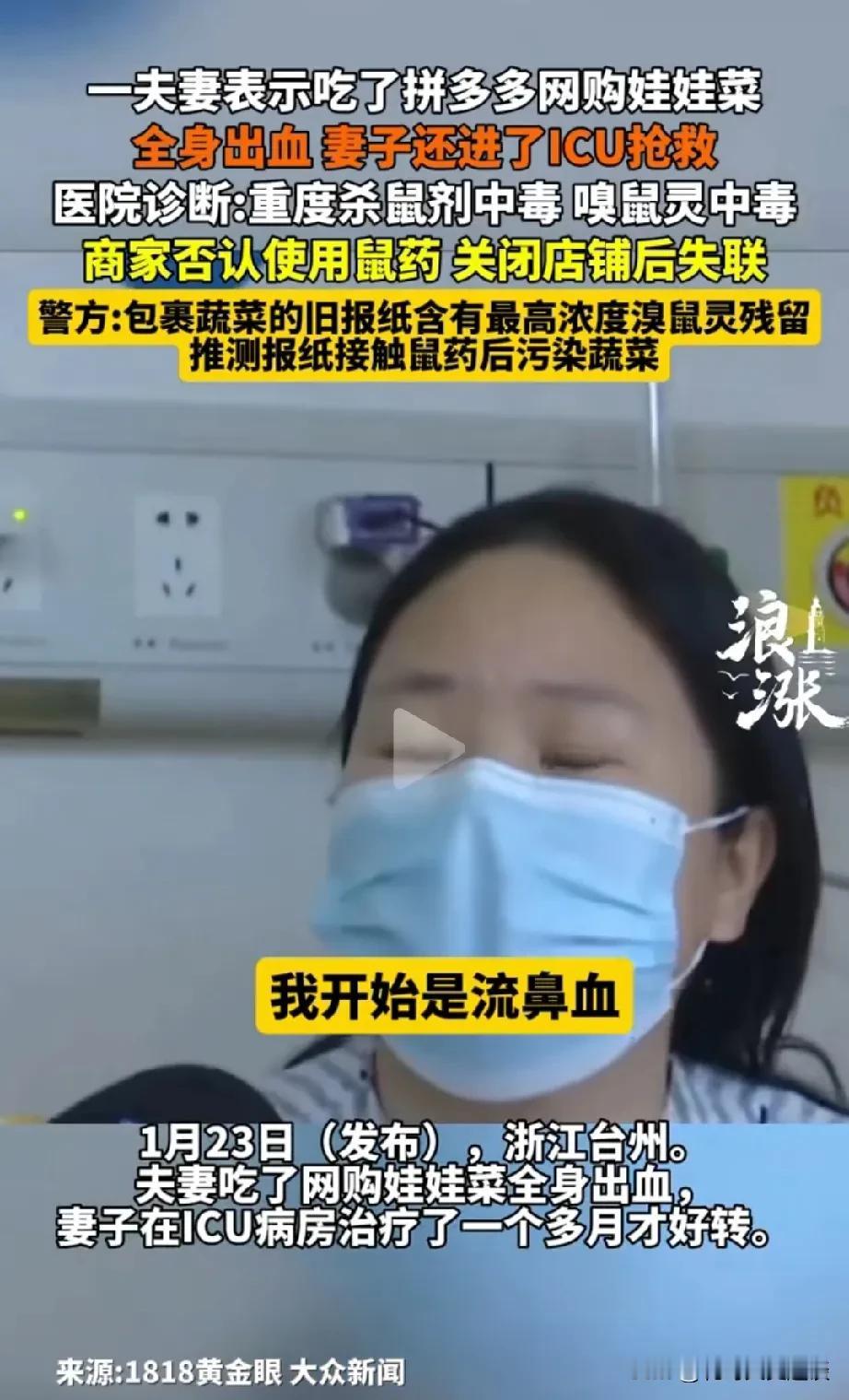 看了这个瑟瑟发抖。网友在某夕夕平台上买的娃娃菜吃了流鼻血嘴起泡,检测发现包菜的报纸上🈶老鼠药污染。都住进了ICU,一个多月才好。店家拒绝说有老鼠药,关闭店门失联了。 看了这个新闻,不敢轻易在网上买菜了。