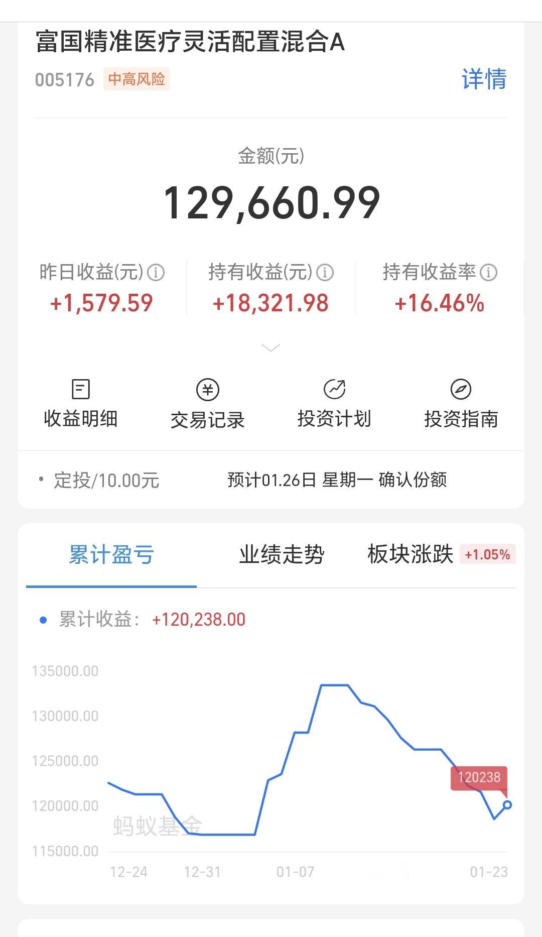 基金:创新药板块是什么情况 许多人最近在抱怨创新药板块的基金,有些人每天都在喊亏麻了,我前天提醒,按照周线级别看,有可能是一个进场点,但我自己是没有进场,主要原因是那天收的一个几乎光脚阴线,没有多少下影线,更没有很长的下影线。 这个板块昨天上涨了1.42%,持有人数在所有板块当中排名第10位,里面的散户人数也是不少,各板块昨天加仓人数排行榜见下面的截图3,持有人数排行榜见下面的截图4,加仓人数最多的是平安医疗健康,持有人数最多的是总赢医药创新智选混合。 看下面的截图5,这是创新药板块日K线图,前段时间上涨突破了下跌通道的上轨,按照规则,那里是一个进场点,突破了下跌通道的上轨,上涨只是大概率的事情,不是绝对的事情,那一次突破以后是冲高回落,但到现在为止,并没有确定是假突破,但在那个进场点进场以后,到现在为止并没有能够挣到钱,这就是市场,就是市场迷人的地方,市场走势的不确定性才是最迷人的地方,让你看不懂的地方才是最迷人的地方,不然为什么有些女人半遮半掩,只有那些半遮不掩的地方,才是你最感兴趣的地方。 看下面的截图6,这是创新药板块周K线图,前段时间跌破了上涨通道的下轨,现在在上涨通道下轨线上方震荡,按照规则,上涨通道下轨线上方是一个进场点,这也是我为什么前天提示进场的原因,但这个进场以后也不是100%会上涨,只是上涨的概率比下跌的概率大一些,这一点是许多人不能理解的,这也是许多人玩不好基金的原因。 创新药板块基金我持有129660元,持有收益18321元,持有收益率16.46%,累计收益120238元,每天定投10块钱。 这只基金我已经减仓了两次,把仓位从30多万减到了10多万,这个10多万基本上全部是我的利润,我当时减仓的目的有两个,一个是这只基金占比很高,单只基金占比很高是有风险的事情,如果这个板块上涨幅度大,利润会大幅度增长,如果这只基金大幅度下跌,整体收益会受很大的影响。为了安全起见,我就进行了分批两次止盈。另外一个原因就是有利润了以后,就需要落袋为安,只有到了自己口袋里面的钱,才是真正属于自己的。 我们时刻都需要记住均衡配置,单只基金的占比不能很高,我们时刻都需要记住落袋为安,只有到了自己口袋的钱才是自己的,我们时刻要记住不能一把梭哈,只有分批进出才是最稳妥的办法。 大家帮忙评论,点赞,转发和分享,谢谢大家。