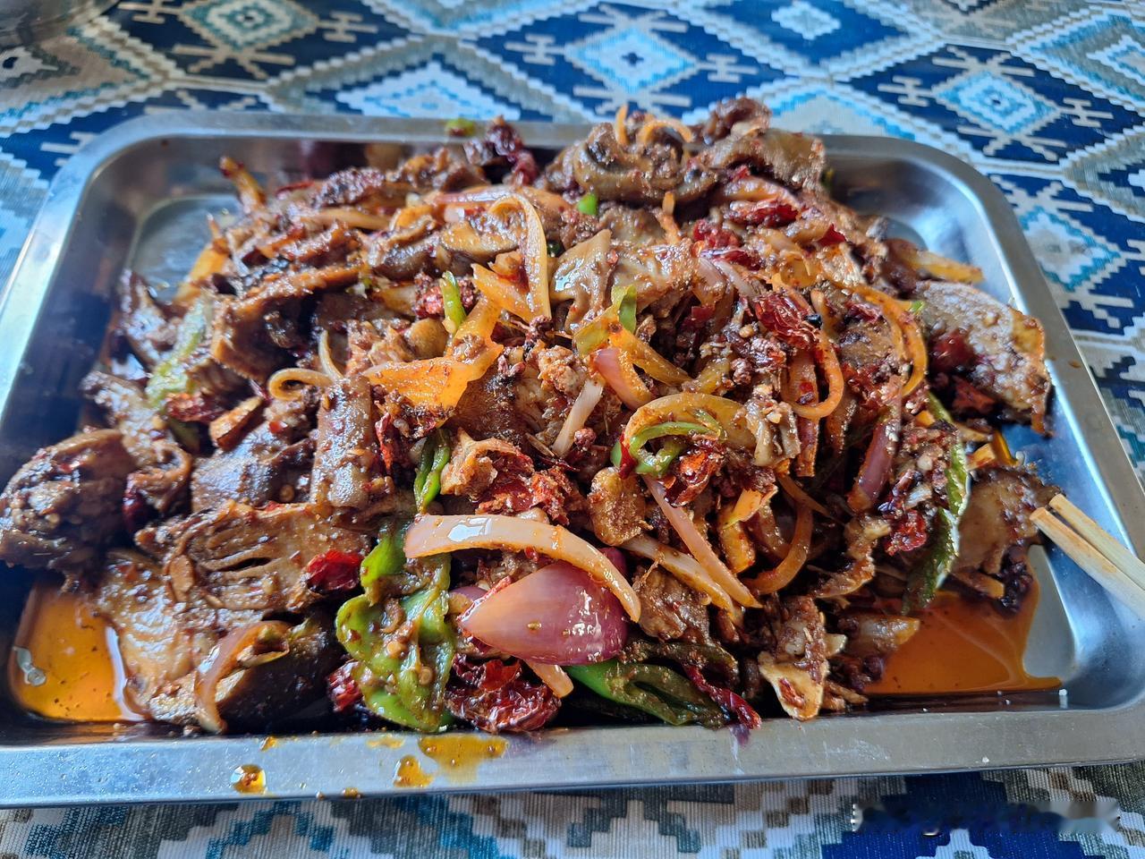 点了份爆炒羊头,店家说是用一整只羊头炒的,但我吃出了四个眼睛,吃下去了一个,这还剩三个。