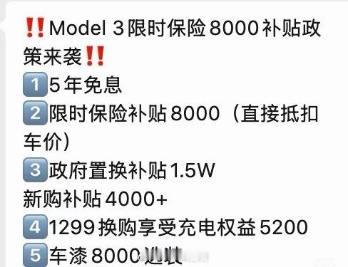 Model 3部分车型享8000元限时保险补贴特斯拉怎么了政策不少了,看来学习了不少其它新势力的新玩法,8000保险补贴不少了~