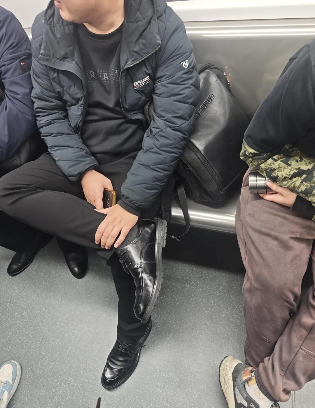 大哥你一翘脚,包一放就没座了 高峰期 拥挤的地铁 好家伙