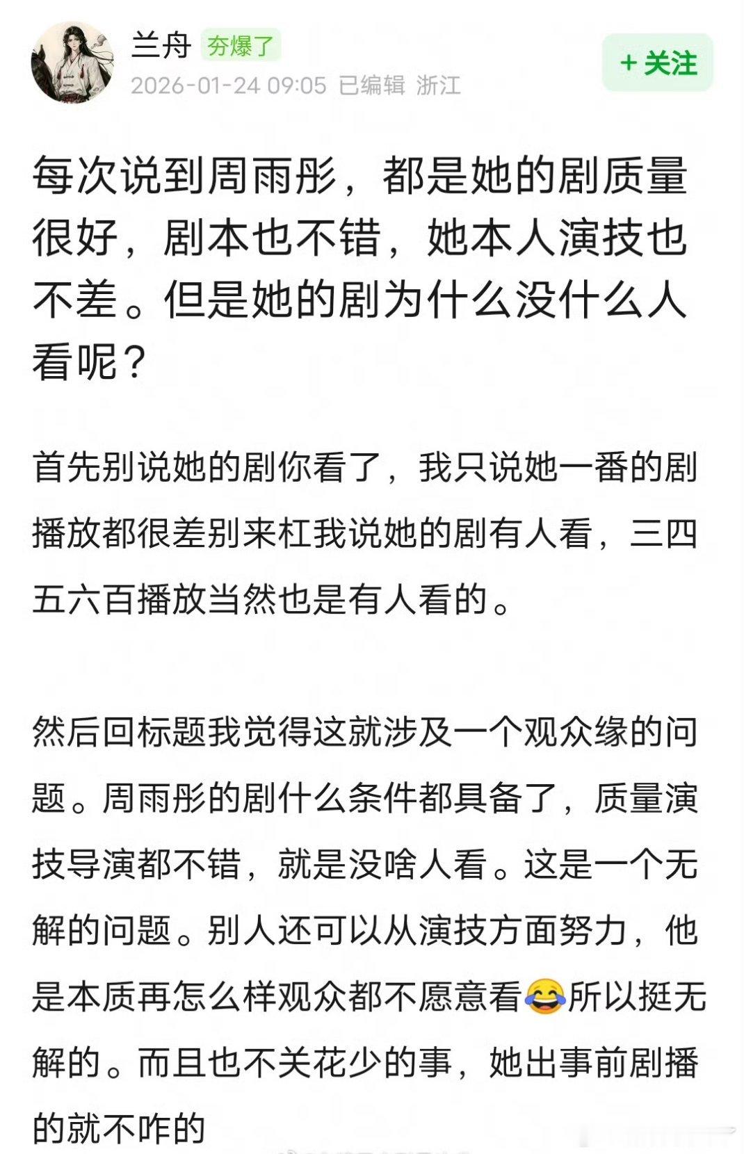 周雨彤的观众缘这么差吗?