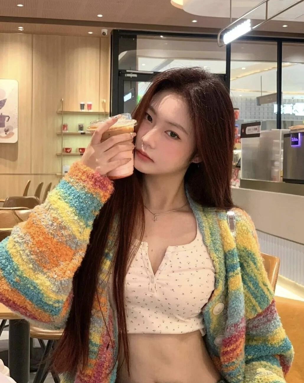 🌈 把彩虹色穿在身上,配一件软乎乎的波点吊带,在咖啡店的暖光里接住这份甜。看着眼前的彩虹甜甜圈,才发现今天的快乐,是色彩和松弛感给的。