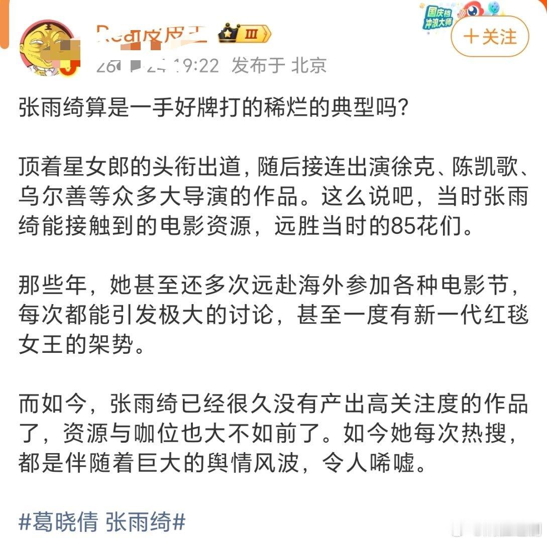 张雨绮算是一手好牌打的稀烂的典型吗?什么情况?她咋了,看着人美心善啊葛晓倩 张雨