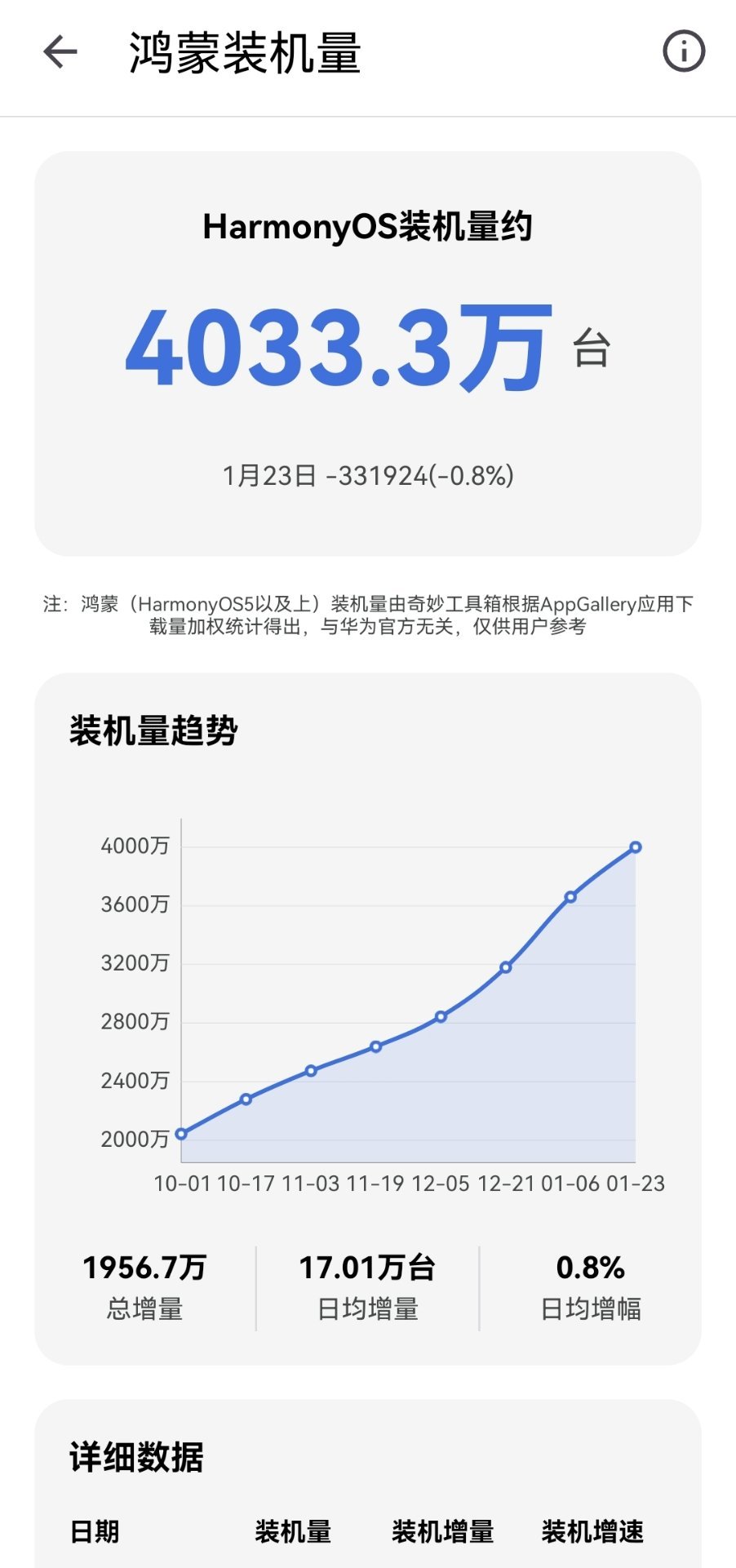 鸿蒙OS设备装机量已经突破4000万。