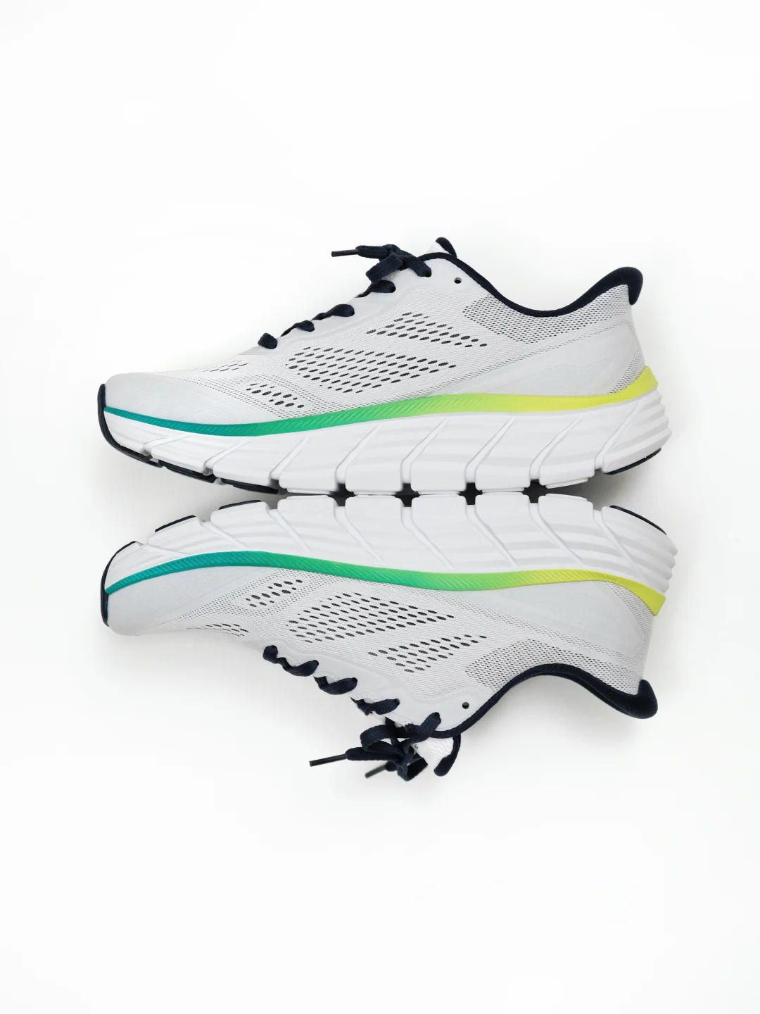 作为斯凯奇 2026 开年王炸,柔感FLEX直接封神,妥妥的新手入门跑鞋天花板!我一眼就被鞋身底部的渐变色所吸引,荧光黄到湖水绿的过渡非常清爽又带有速度感。厚底设计看着敦实,脚感却很轻盈,踩下去带弹劲,完全没有笨重感,走路非常轻快!鞋底设计主打一个耐磨扛造,穿超久都不易磨损。