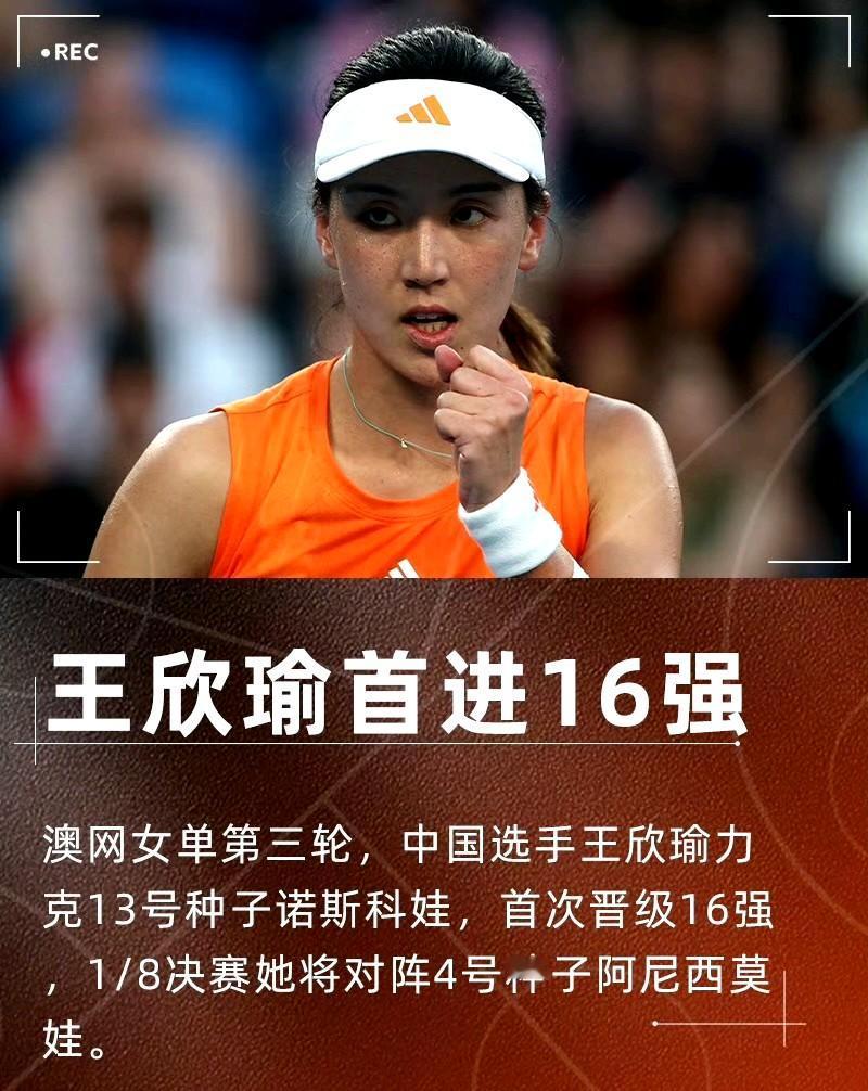 澳网女单第三轮,王欣瑜7-5/6-4击败13号种子诺斯科娃,首进澳网16强。拿到240分/48w澳币,即时排名33位。本届澳网王右已经送两位种子去钓鱼了。 第二轮淘汰:奥斯塔彭科(24) 第三轮淘汰:诺斯科娃(13) 下一轮对手:阿尼西莫娃(4),双方无交手记录,能不能再干票大的?