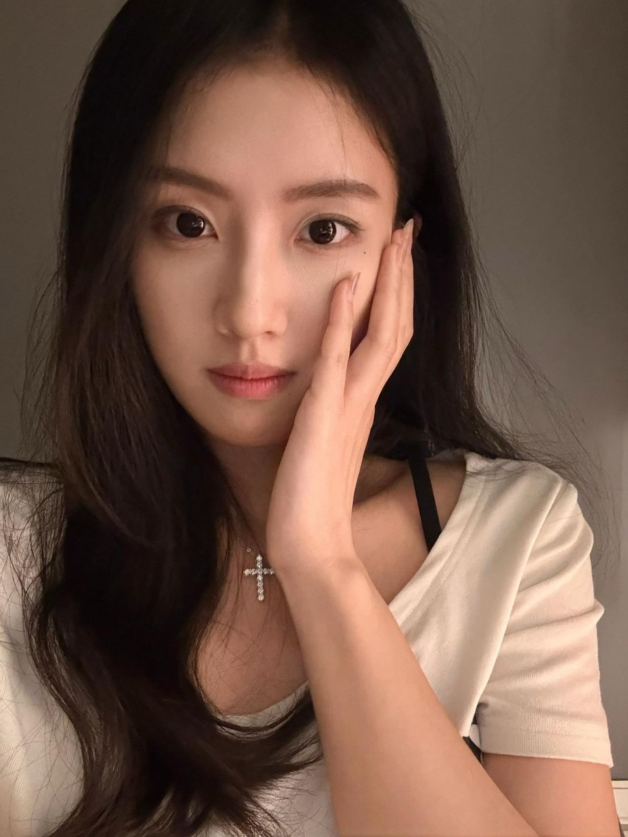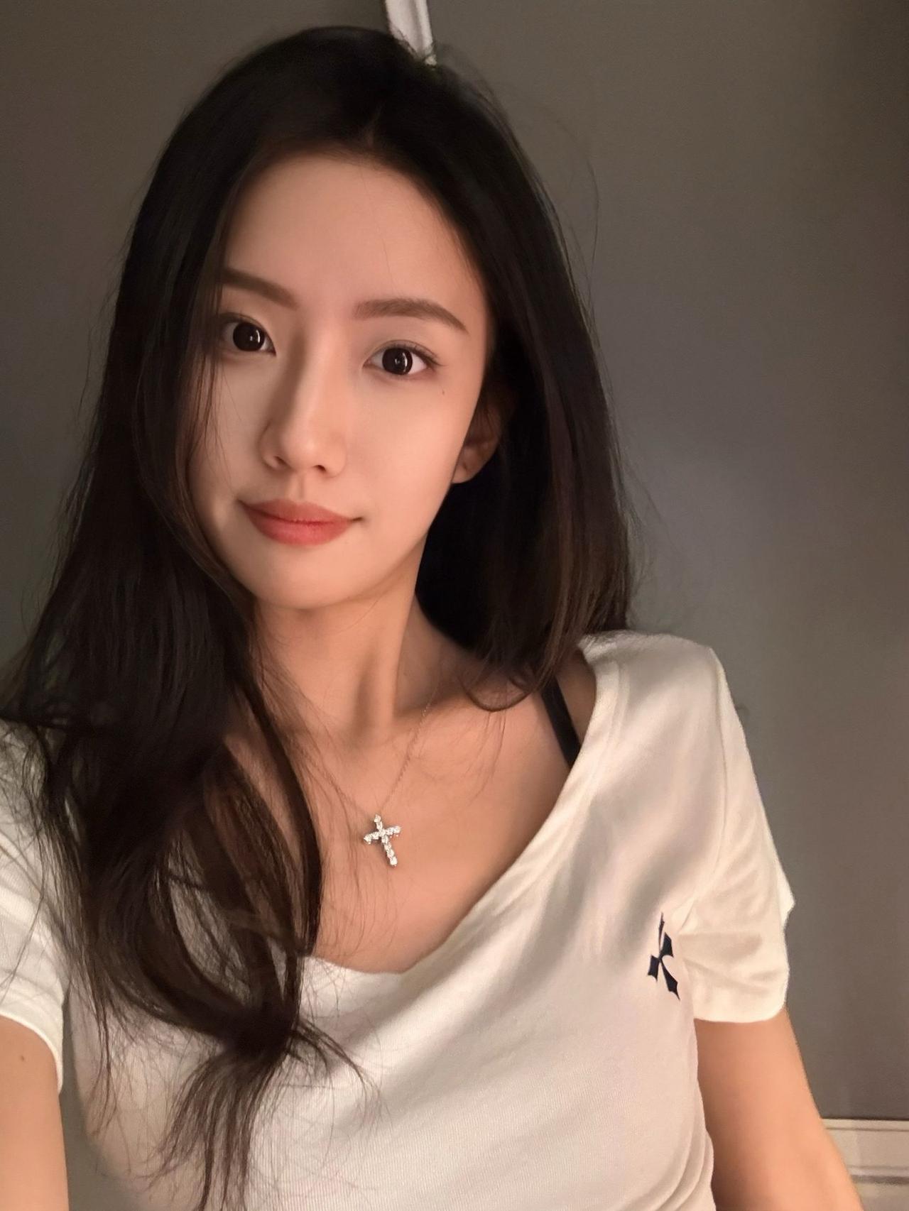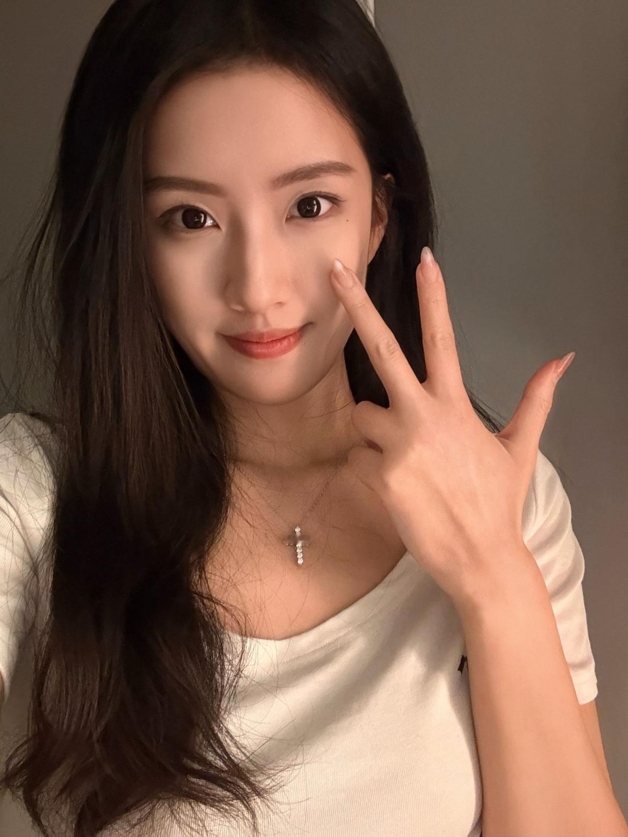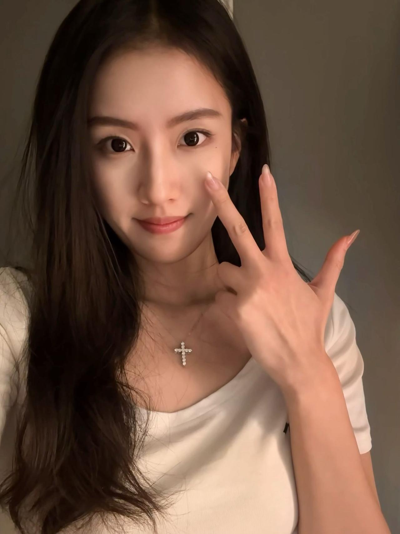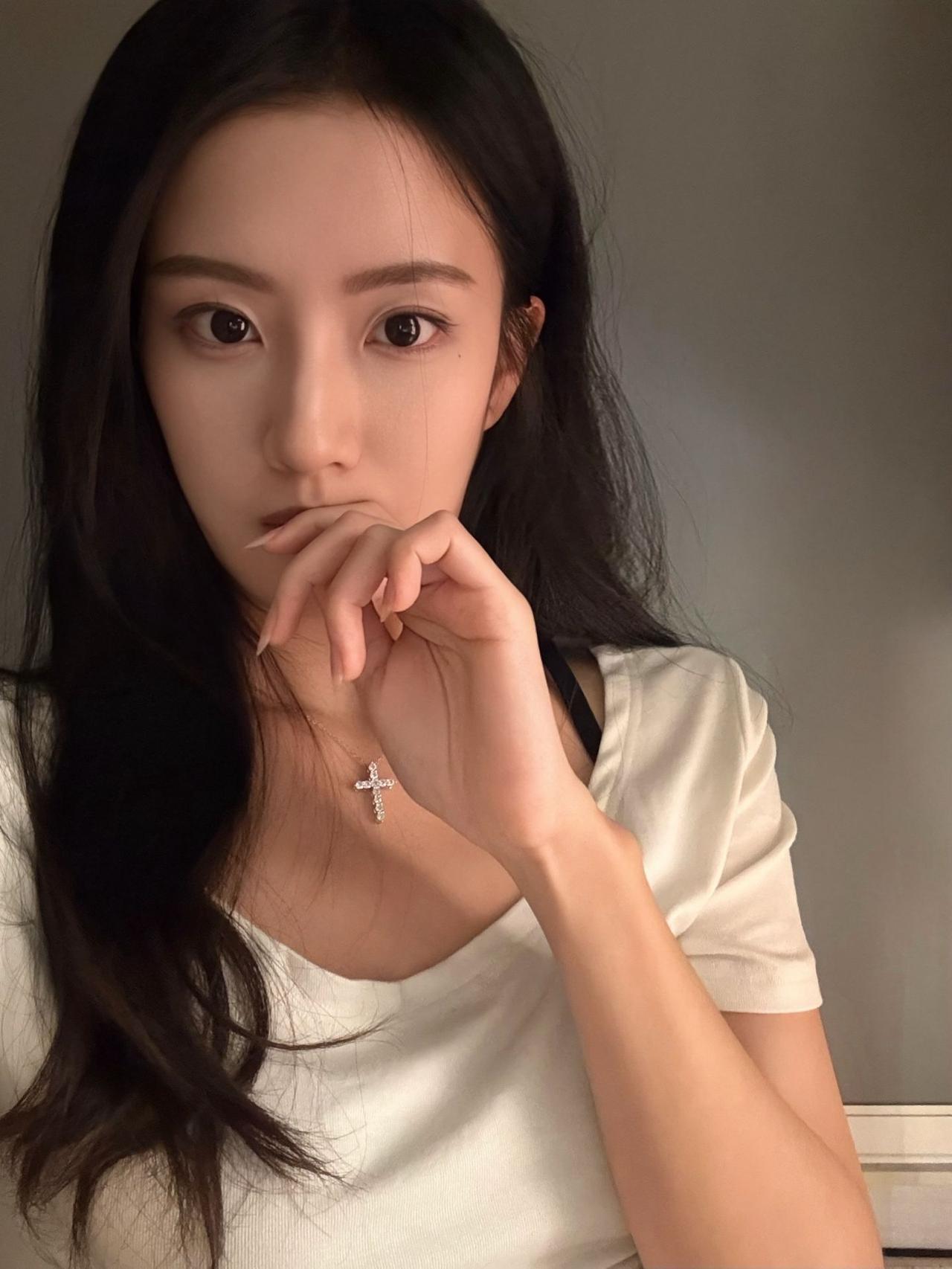 温柔甜美的少女,轻抚脸颊,散发自然魅力。