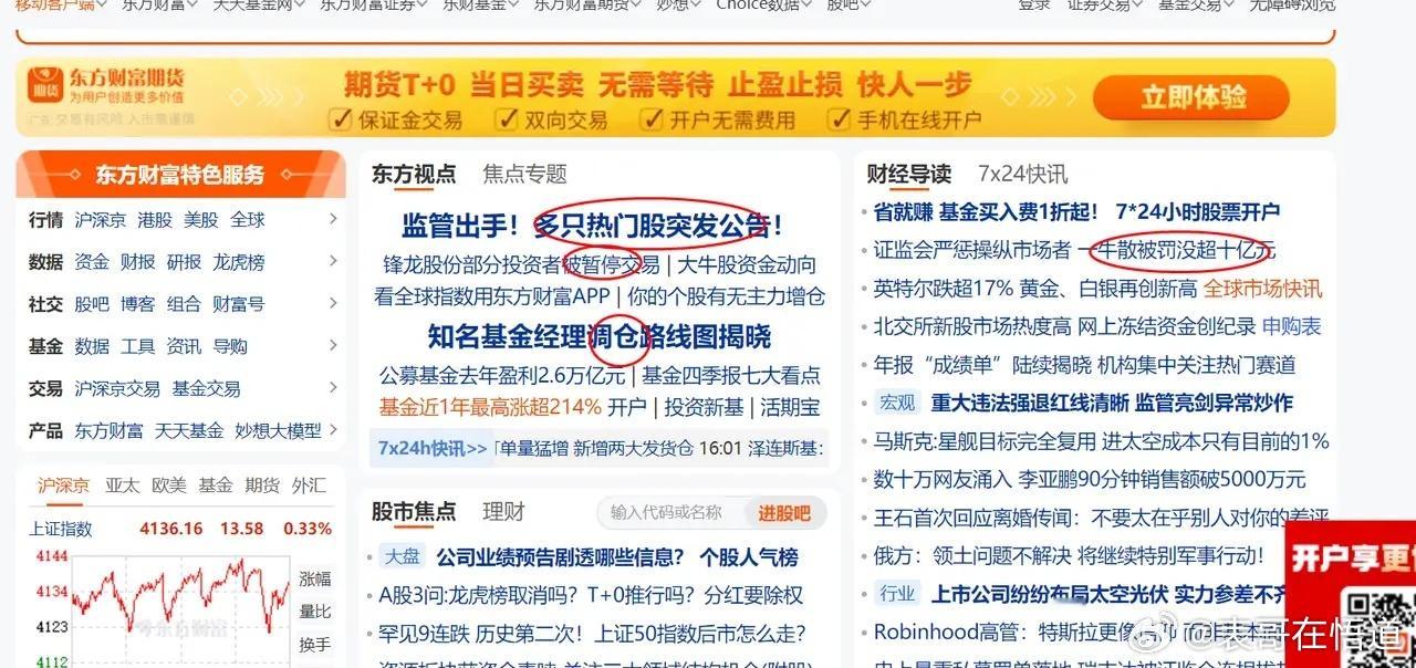 2026年1月24日下午,看了一眼东财,网页如下。关键词:热门股、公告、牛散、被罚、调仓意思不言而喻。上周柚子顶风重新炒作商业航天,周末敲山震虎,如果知趣,下周就会迎来题材下杀。而公募调仓,或许跟50、300下杀而不破位有关。整体来看,上头是要将资金往大盘权重里赶,只是提前一周完成了调仓。下一周,如果题材和权重集体下杀,那么,我们应该是当做一次低吸机会,还是夺路而逃?长期看,我认为如果出现破位下行,应当当做一次低吸机会。大盘权重股的回调,或许正如坊间所传,不过是GJD之间的一次倒手,是不同责任之间的交棒。选股,还是要用资产组合的思路,搭配股票,长期持有,逢低吸入,等待周期轮转,高位套现。