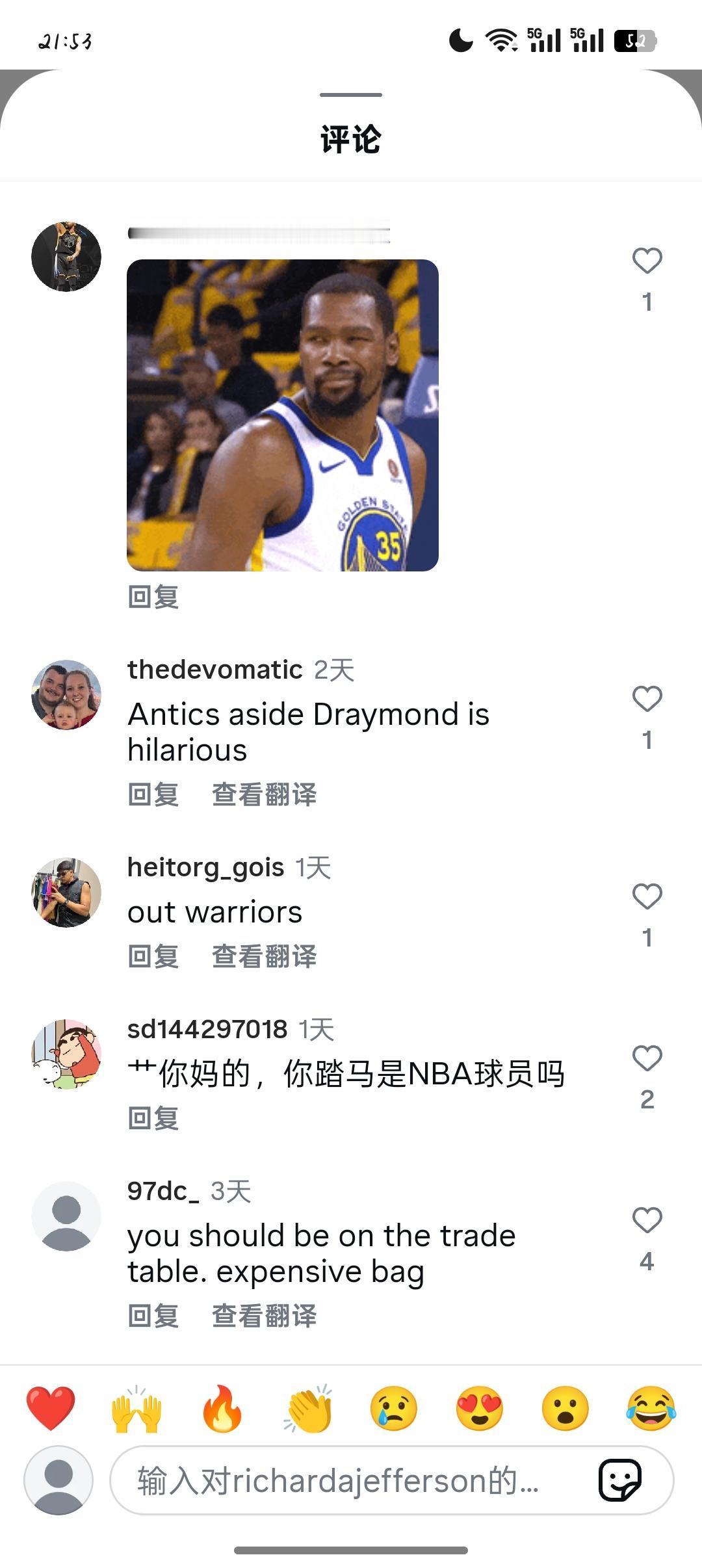 追梦账号被围攻,还不考虑关评论吗追梦格林金州勇士金州勇士