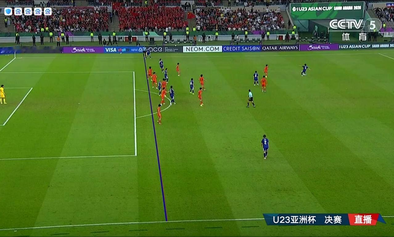 u23亚洲杯决赛:中国队球门被日本队连续攻破 北京时间1月24日23时,u23亚洲杯决赛如期进行,中国队迎战日本队。第12分钟日本队8号球员破门,第20分钟日本队6号球员再下一城,中国队0-2落后。 主裁判一声哨响上半场比赛开始了,场上穿着红色球衣的是中国队,穿着蓝色球衣的是日本队。中国队从左往右攻。第5分钟日本队获得角球,禁区内的射门非常有力,比李昊扑下,防守球员踢出底线,连续的角球没有形成射门。第7分钟中国队的传中球非常有威胁,被日本门将没收。第8分钟日本队的射门打偏了。第12分钟日本队8号球员禁区内抽射破门,日本队1-0领先。第20分钟日本队6号球员禁区内抽射破门,中国队0-2落后。u21亚洲杯 U23国足出线 亚洲杯U22