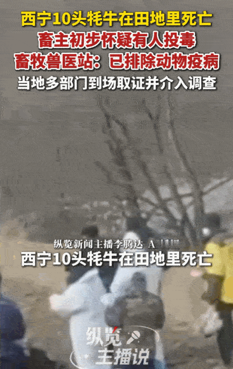 “严查到底!”近日,青海西宁,一名牧民养殖户清晨去田里查看时,竟发现自家放养的10头壮硕牦牛竟集体倒在田地里没了气息,口鼻还残留着异常分泌物。畜主心疼得直掉眼泪,怀疑有人恶意投毒,于是赶紧报警!网友:得罪谁了? 牧区的清晨本来就凉飕飕的,这位牧民大哥跟往常一样,早早起床去看牦牛,这都是他日复一日的习惯,就想看看自家牦牛吃得好不好、长得壮不壮。 可谁能料到,等着他的不是健康的牦牛,而是一场灭顶之灾。 走近田间一看,10头牦牛一动不动地躺在地上,他赶紧跑过去喊、去推,半点反应都没有,伸手一摸,早就没了体温,再仔细看,每一头牦牛的口鼻都有异常分泌物,看着就不对劲。 大家可能不知道,对于牧民来说,牦牛可不是普通的牲畜,那是全家的指望啊! 这10头牦牛,每一头都长得壮实,正处于育肥的关键期,按照当地的市场价,一头就值上万块,10头加起来,可不是一笔小数目。 这一下子全没了,相当于直接断了牧民全家的收入来源,家里的衣食住行、老人孩子的开销,全都没了着落,也难怪牧民大哥当场就哭了,换做是谁,辛辛苦苦养的东西被人糟践成这样,都会崩溃。 牧民大哥悲痛之余,也没乱了方寸,他看着牦牛的死状,再想到口鼻的异常分泌物,心里一下子就犯了嘀咕——肯定不是自然死亡,十有八九是被人恶意投毒了! 他来不及多难过,赶紧掏出手机报警,就想让警方尽快查出真相,找到那个下毒的人,讨个公道,弥补一点家里的损失。 警方接到报警后,也特别重视,立马就赶到了现场,还第一时间联系了当地的畜牧兽医站,请专业的人来排查死因。 兽医站的工作人员也不敢耽误,带着检测设备和工具火速赶到,一头一头仔细检查牦牛的尸体,后来还选了几头进行了解剖,提取了胃里的残渣、血液还有口鼻的分泌物,带回实验室做详细检测。 没过多久,排查结果就出来了——排除动物疫病导致的死亡! 这句话一出来,投毒的嫌疑就更重了,不是疫病,不是自然死亡,那除了人为投毒,还能有什么原因? 毕竟10头牦牛同时出事,不可能是巧合,这一点,相信明眼人都能看出来。 因为这事涉及到牧民的重大财产损失,性质也比较恶劣,当地公安、农业农村等好几个部门,都陆续赶到了现场,一起开展工作。 有的人在现场仔细勘察,找可疑的线索、收集证据,有的人专门跟牧民大哥对接,问清楚牦牛平时怎么放养、最近有没有跟人闹过矛盾、结过怨。 有网友说“牧民靠牦牛过日子,这一下相当于毁了一个家,太缺德了”,还有网友说“不管有多大的仇、多大的怨,也不能拿牲畜撒气,更不能断人活路,这已经不是缺德,是违法了”。 在这里,我也说句实在又犀利的话:不管背后的凶手是谁,不管他跟牧民大哥有什么过节,做出这种断人生路的事,就不配被原谅! 牦牛是牧民的命根子,是他们辛辛苦苦一点点养起来的,你一时的恶意,毁的可能是一个家庭的未来。 这种行为,不仅残忍,更是触碰了法律的红线,迟早要为自己的所作所为付出代价。 大家觉得,背后的凶手到底是什么来头,为什么要对10头牦牛下手?. 信息来源:纵览新闻