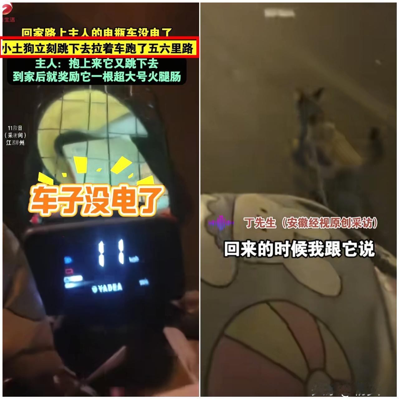 泪目! 江苏邳州这只小土狗,把“忠诚”两个字刻进了骨子里! 男子骑电瓶车带狗返乡,半路突然没电,离家还有五六里路。 他随口喊了句:“大宝,车子没电了,下去拉我吗?”没想到平时上车就不愿下来的狗子,立马跳下踏板,低头用力往前拽。 男子心疼,一会儿把狗抱上车,一会儿又让它下来,走走停停,嘴里不停念叨“别拉了”,自己也在后面推着。 路人看到急得喊停,说狗关节容易受伤,男子也急了,解释只是临时应急,速度慢,人一直扶着车。 有人说这是患难见真情,狗子听懂了主人的难处;也有人说再心疼也不能让狗拉车,一次用力也可能留隐患。 其实哪有那么多对错,不过是困境里的本能选择。 但爱和心疼,从来都该是双向的。 你遇到这种情况,会让狗帮忙拉车,还是宁愿自己推或叫人来接?