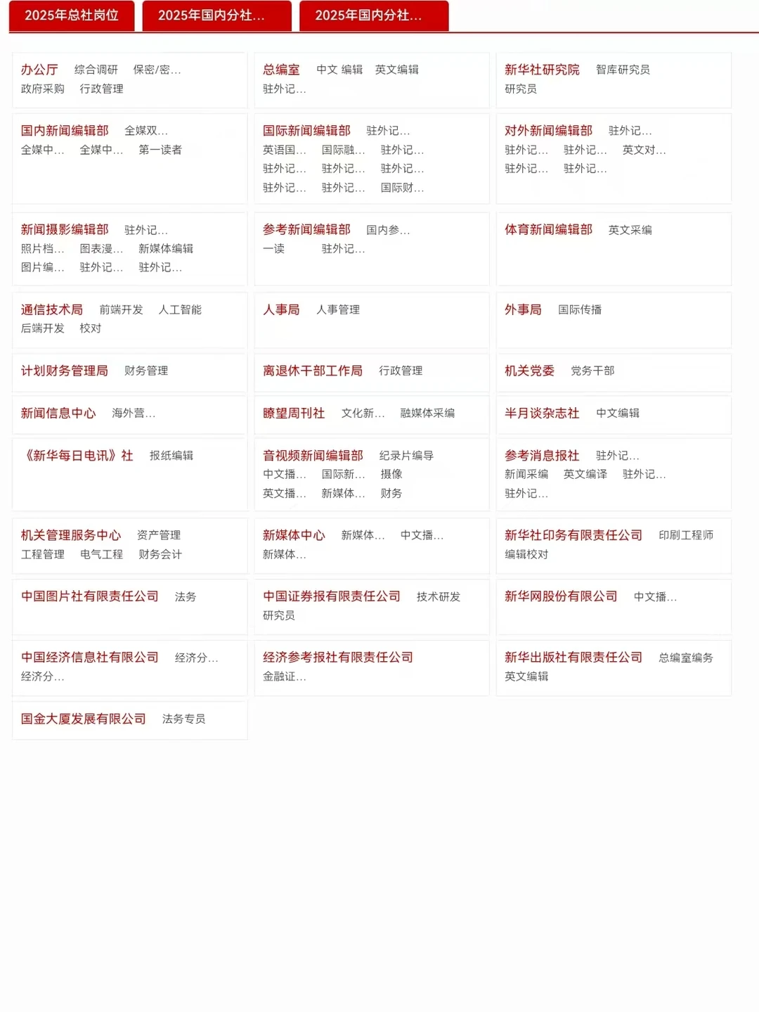 🎈上图是25届新华社岗位部分内容,去年的话一共开了200多个岗位,分为【总社岗位】【分社岗位】【分支机构岗位】,工作地点遍布全国各地,总社可以解决北京户口,待遇属于新传体制内的天花板了,至少在北京地区活的比较滋润。