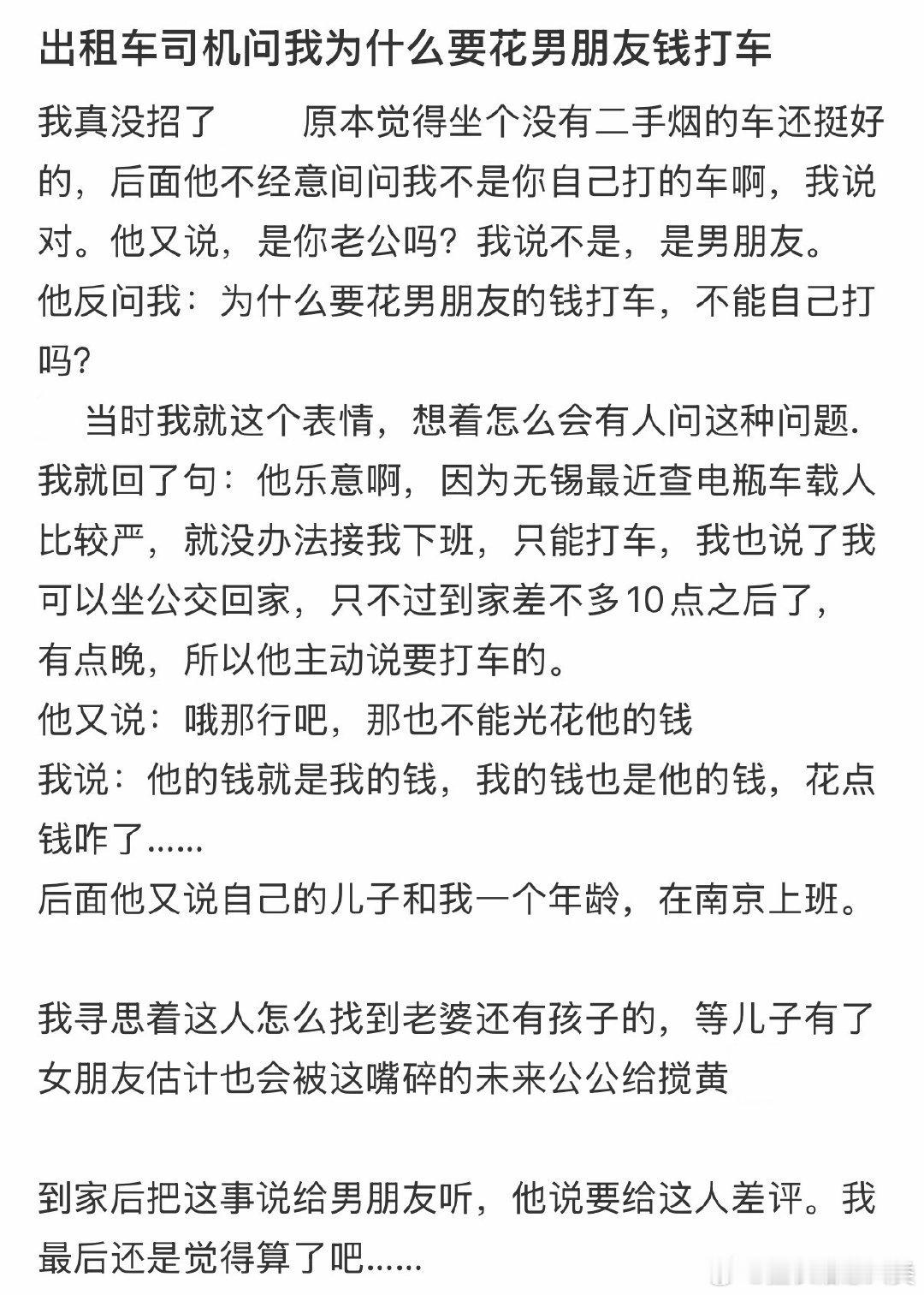 他欠我几十万都没要利息,用他钱打个车怎么了