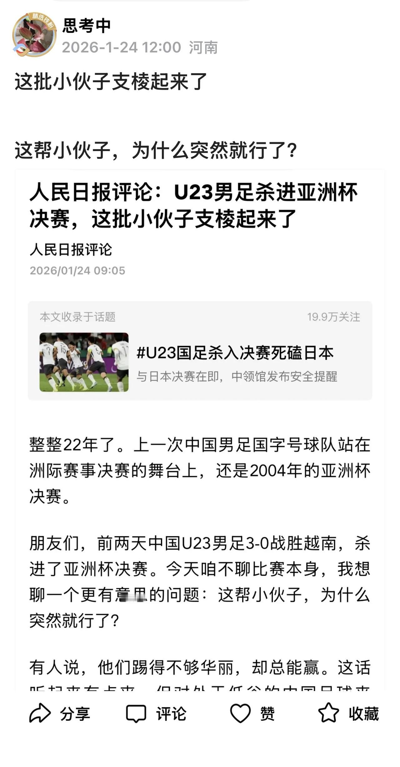 22年前,2004年亚洲杯决赛,中国队以1:3负于日本队。 22年后,2026年U23亚洲杯决赛,中国队以0:4负于日本队。