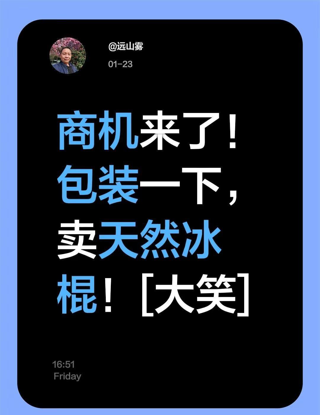 我评论了@雨中慢步的作品:商机来了!包装一下,卖天然冰棍![大笑]