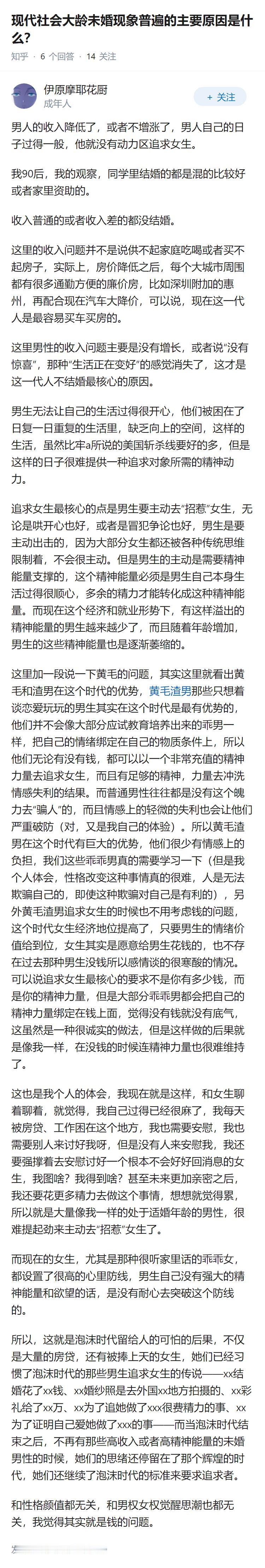 现代社会大龄未婚现象普遍的主要原因是什么?