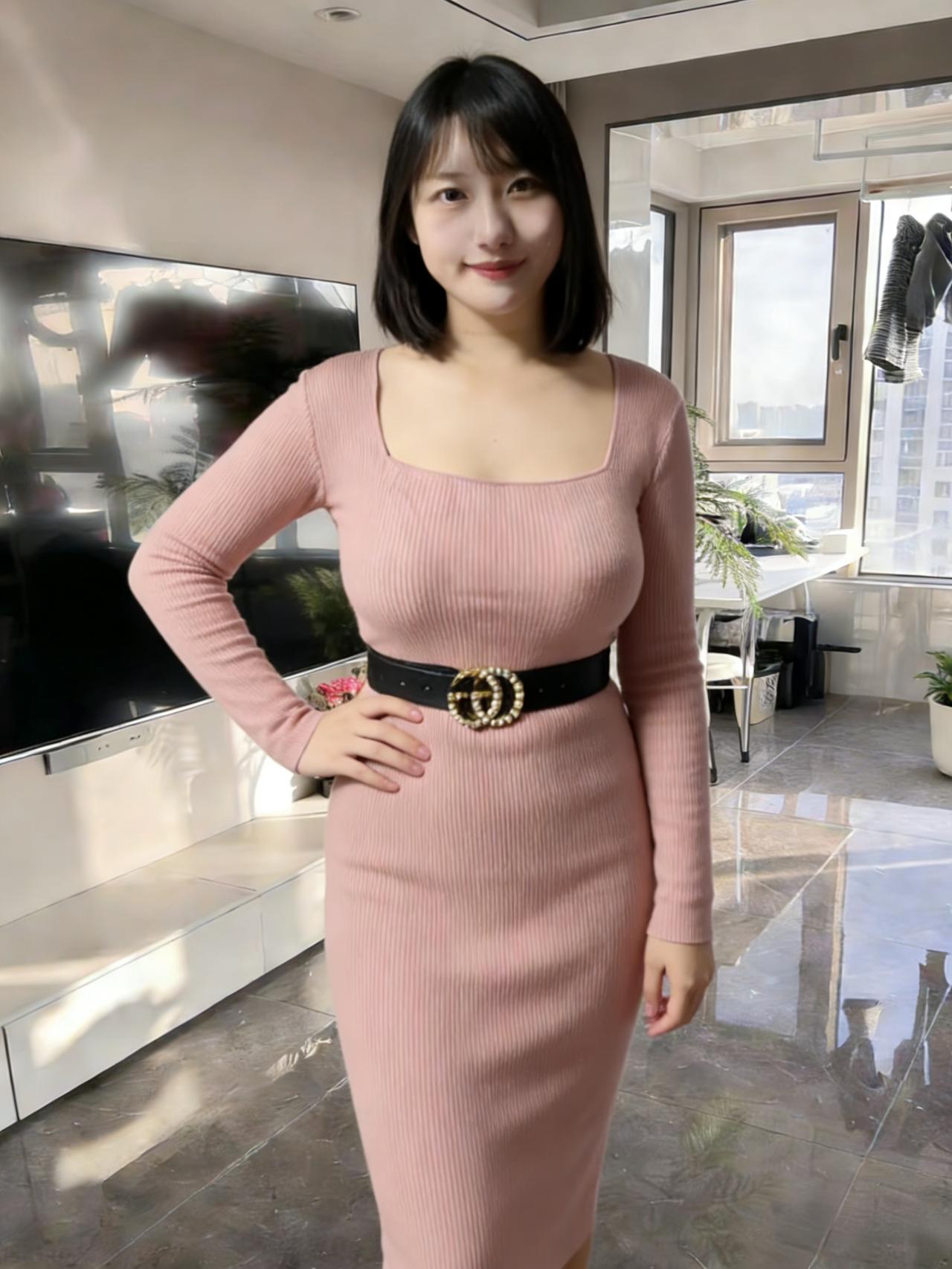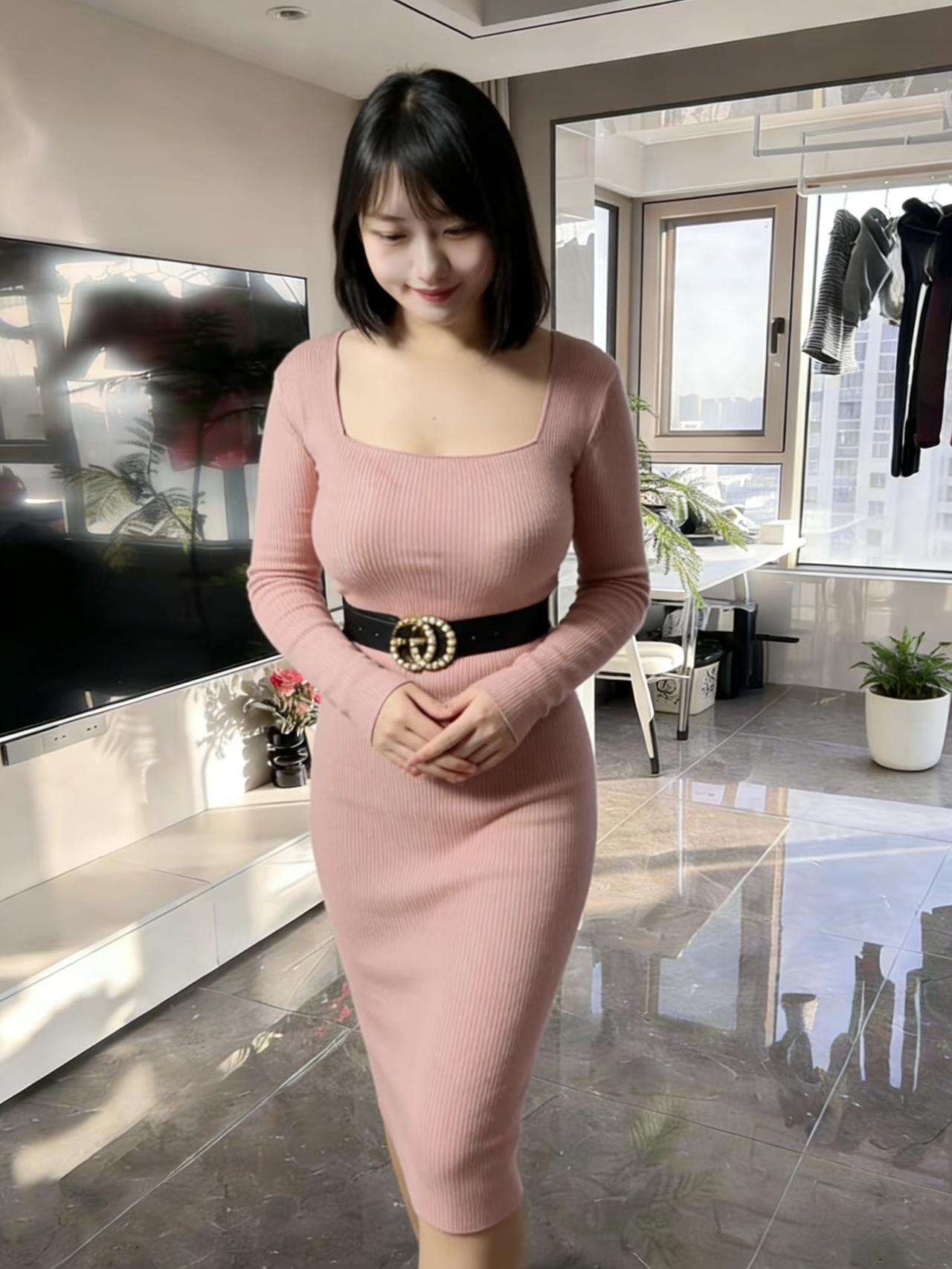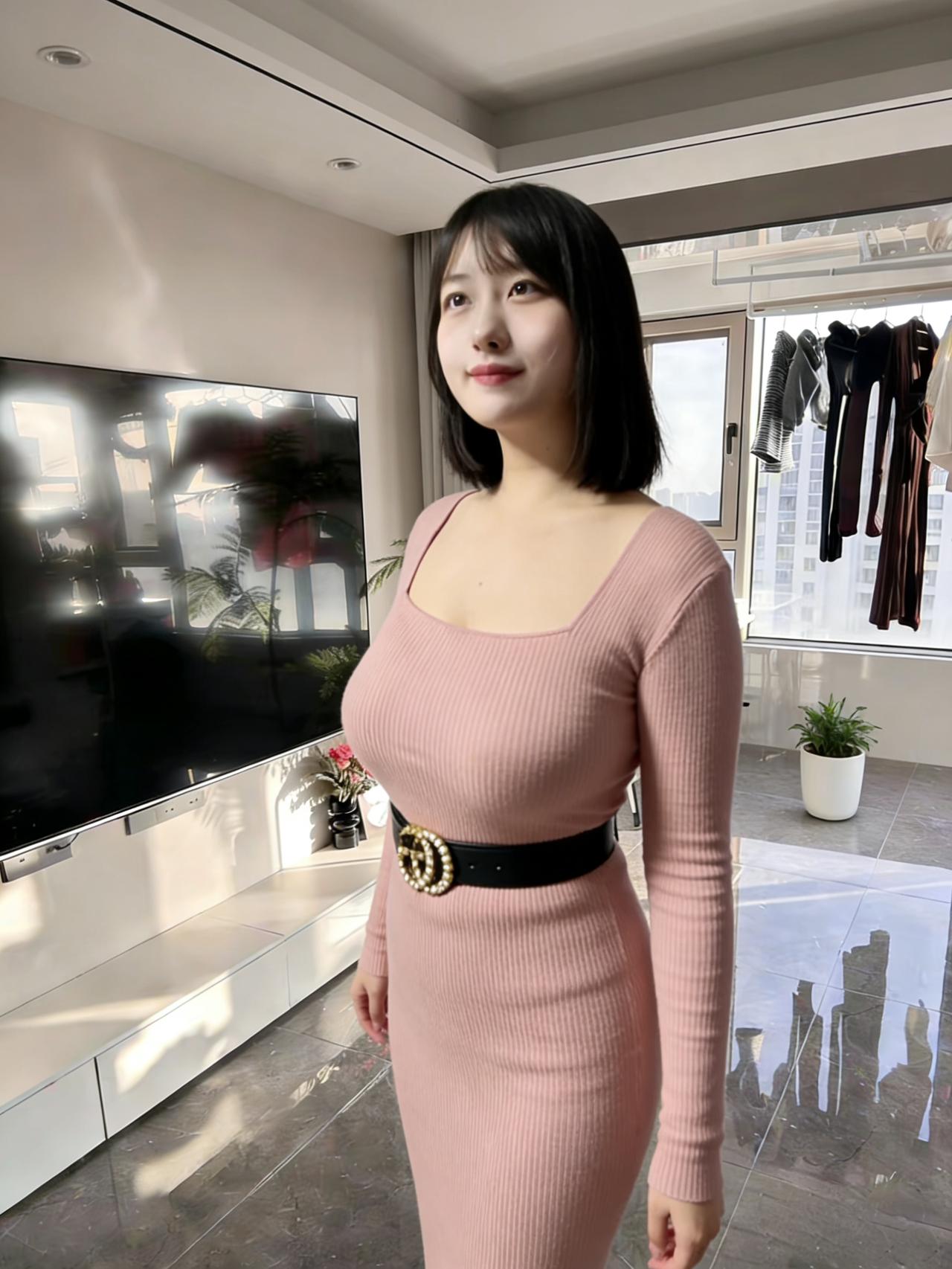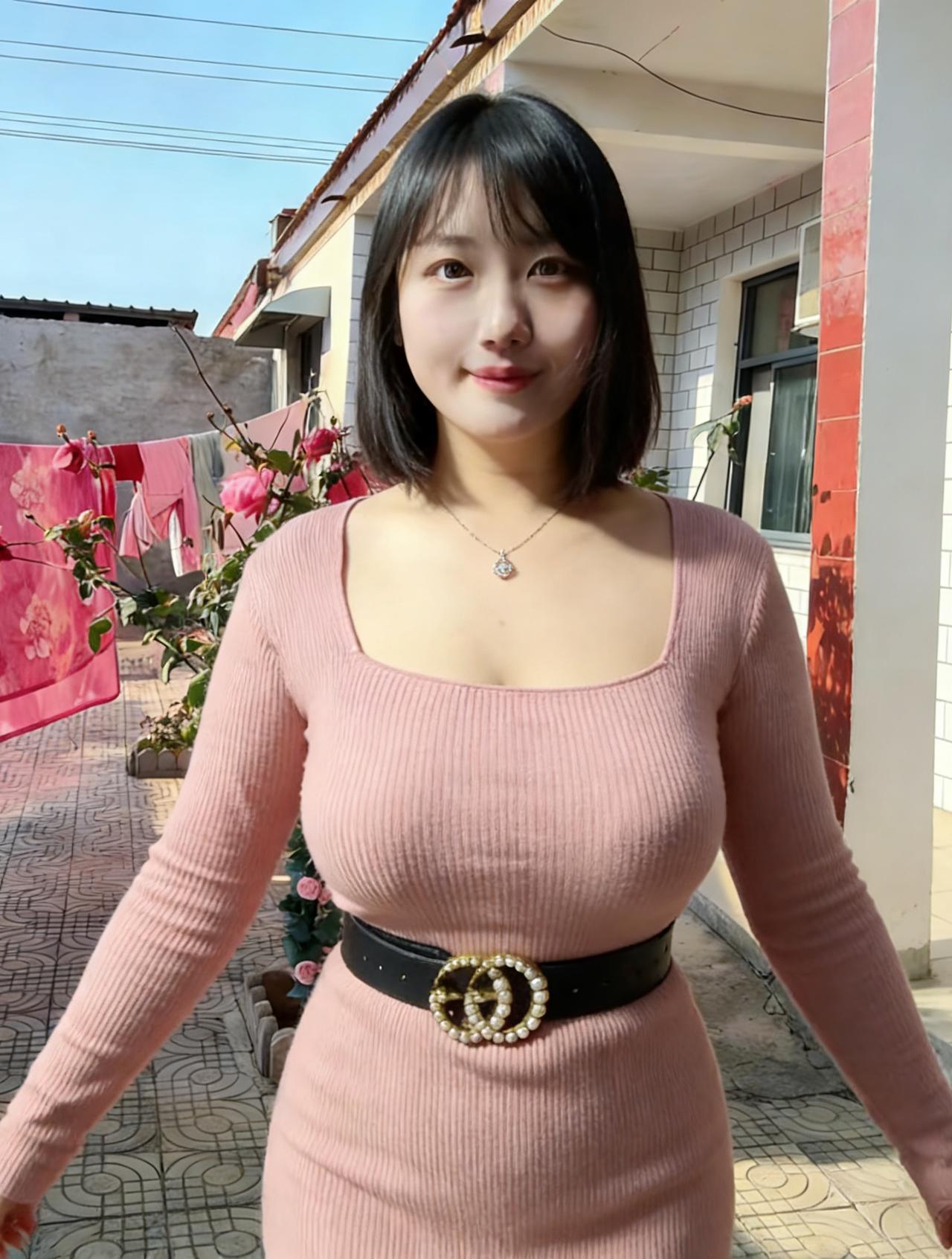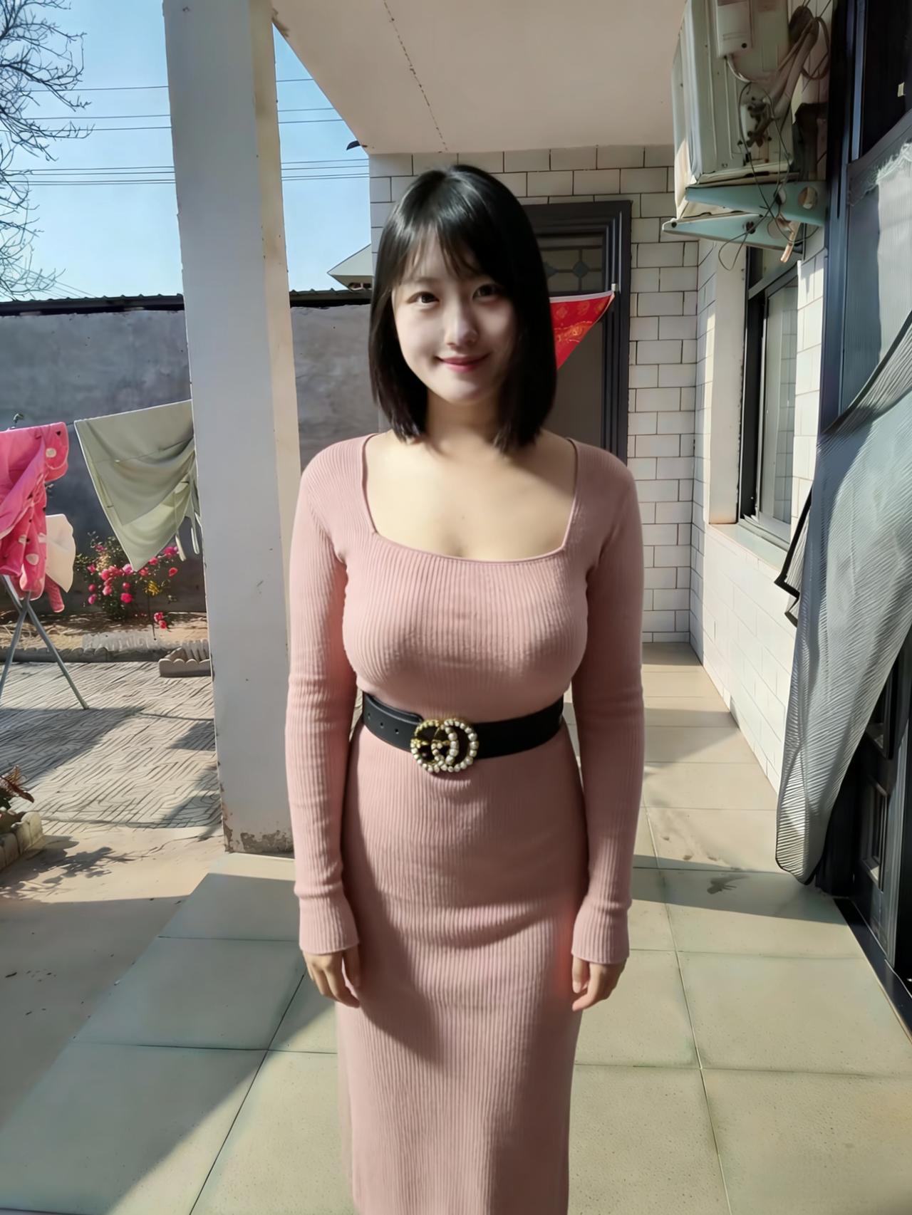 她把晨露的粉织进针脚, 方领裁着半片初升的朝阳。 腰带扣环住细碎的星子, 每一道纹路都在呼吸,像檐角垂落的风。 ~ 客厅的电视还留着昨夜的光影, 她站在那里,就是一整个春天的重量。 有时是花瓣漫过肩头,有时是红囍贴在窗上, 有时是院角的月季探过头,吻她垂落的发梢。 ~ 阳光在她的腰肢弯成弧线, 像母亲纳的鞋底,藏着细密的暖。 不必说什么,裙摆扫过地砖的轻响, 就是生活最温柔的开场。 ~ 她走过的地方,空气都在发亮, 粉是底色,爱是针脚, 把日子缝成贴身的衣裳。 当她转身,风里就有了桂香, 不必等暮色降临,此刻的她, 已是岁月最动人的珍藏。