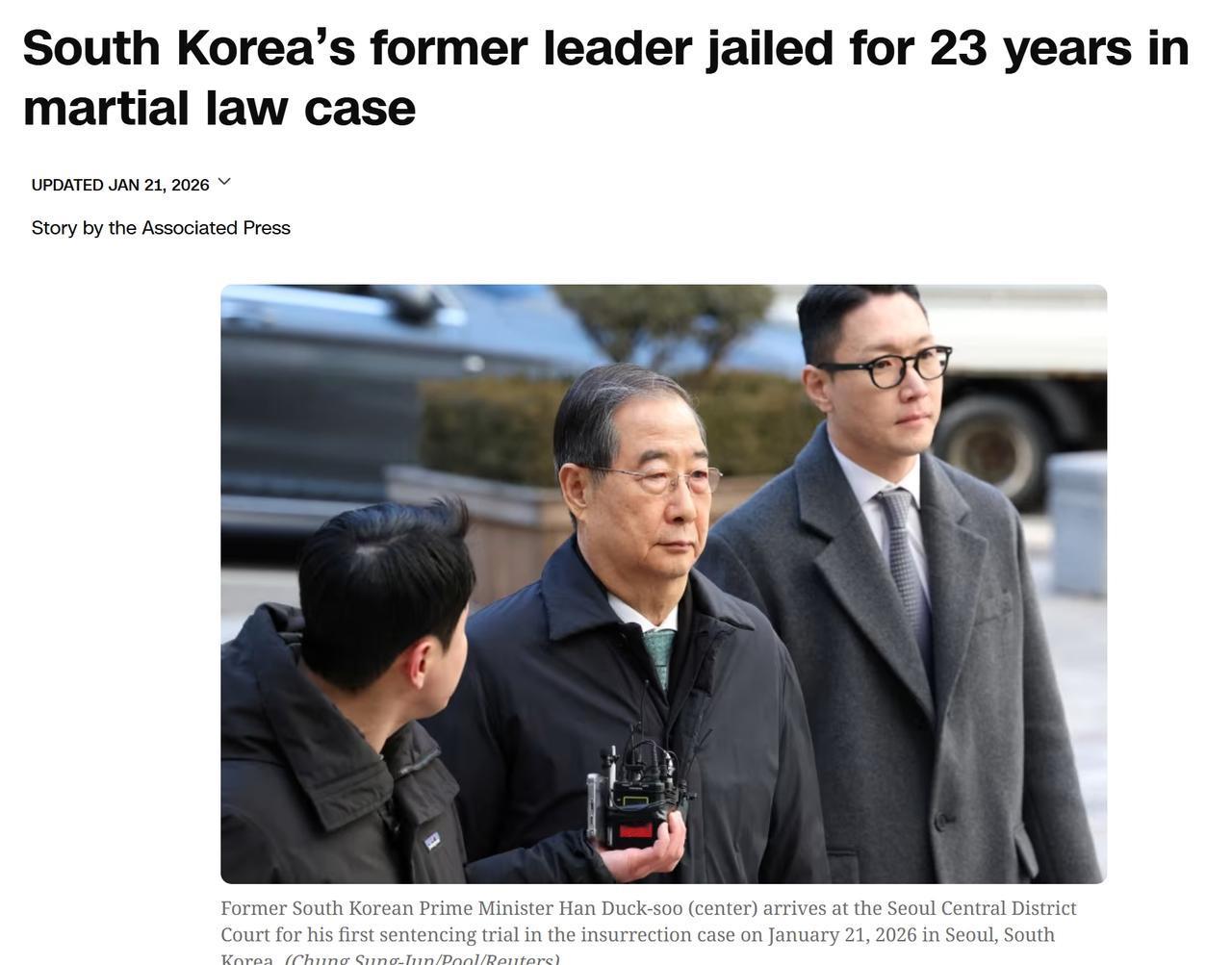 韩国前总理韩德洙被判23年监禁 当地时间周三,韩国法院裁定,前总统尹锡悦实施的戒严命令是叛乱行为,判处前总理韩德洙23年监禁。韩德洙成为尹锡悦政府首位因戒严实施被定罪官员。该判决预计将为涉及尹及其其他同伙的后续裁决奠定基础。 韩德洙是尹锡悦任命的,在戒严危机期间担任三位看守领导人之一。 首尔法院在电视裁决中认定尹锡悦的戒严令构成叛乱,认为他派遣军警进入国会和选举办公室是“骚乱”或“自我政变”,意在破坏宪法秩序,严重到足以扰乱韩国稳定。而韩德洙在叛乱中扮演关键角色,试图通过内阁会议通过戒严令获得程序合法性,法院还判定韩德洙以伪造戒严令并销毁其内容及在宣誓下作伪造有罪。 法官李镇官表示,韩德洙忽视了作为韩国总理的职责,选择参与尹的叛乱,认为叛乱可能会成功:“由于被告的行为,大韩民国本可能回到那个黑暗的过去,当时人民的基本权利和自由民主秩序被践踏,陷入独裁的泥潭中,时间很长。” 叛乱是韩国最严重的刑事指控之一,独立检察官最近要求对被控策划叛乱的尹锡悦判处死刑。首尔中央地方法院将于2月19日对尹锡悦的叛乱指控作出裁决。