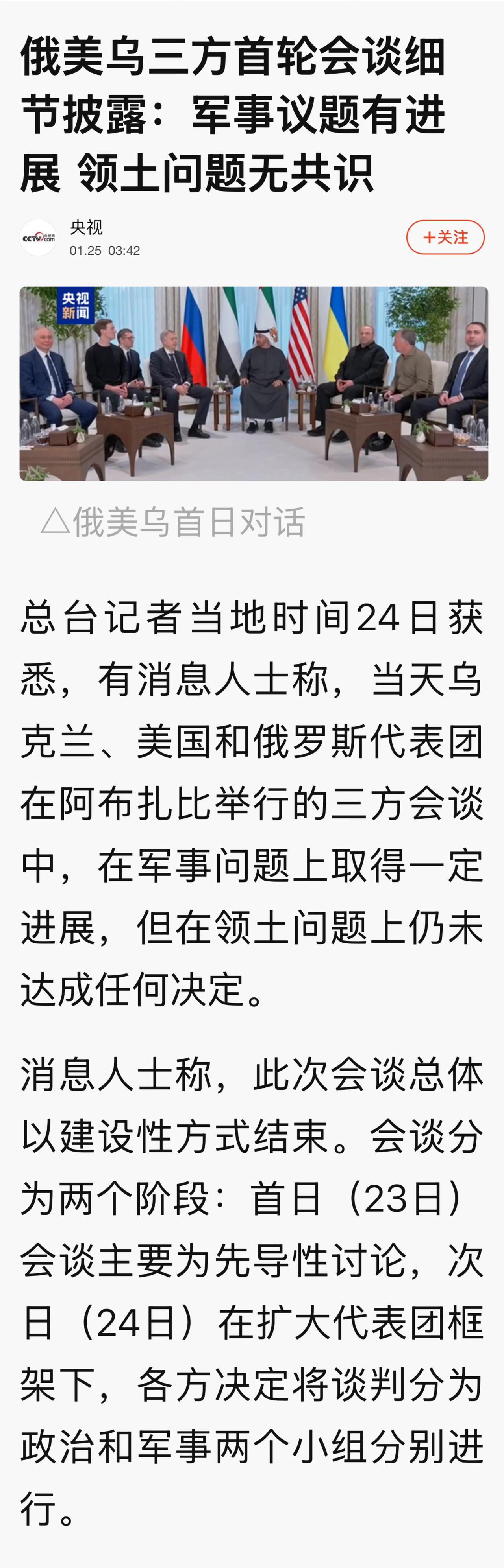 在阿联酋推动下,俄乌冲突后美、俄、乌三方首次进行了接触,旨在探讨政治解决途径,但暂未达成具体共识。