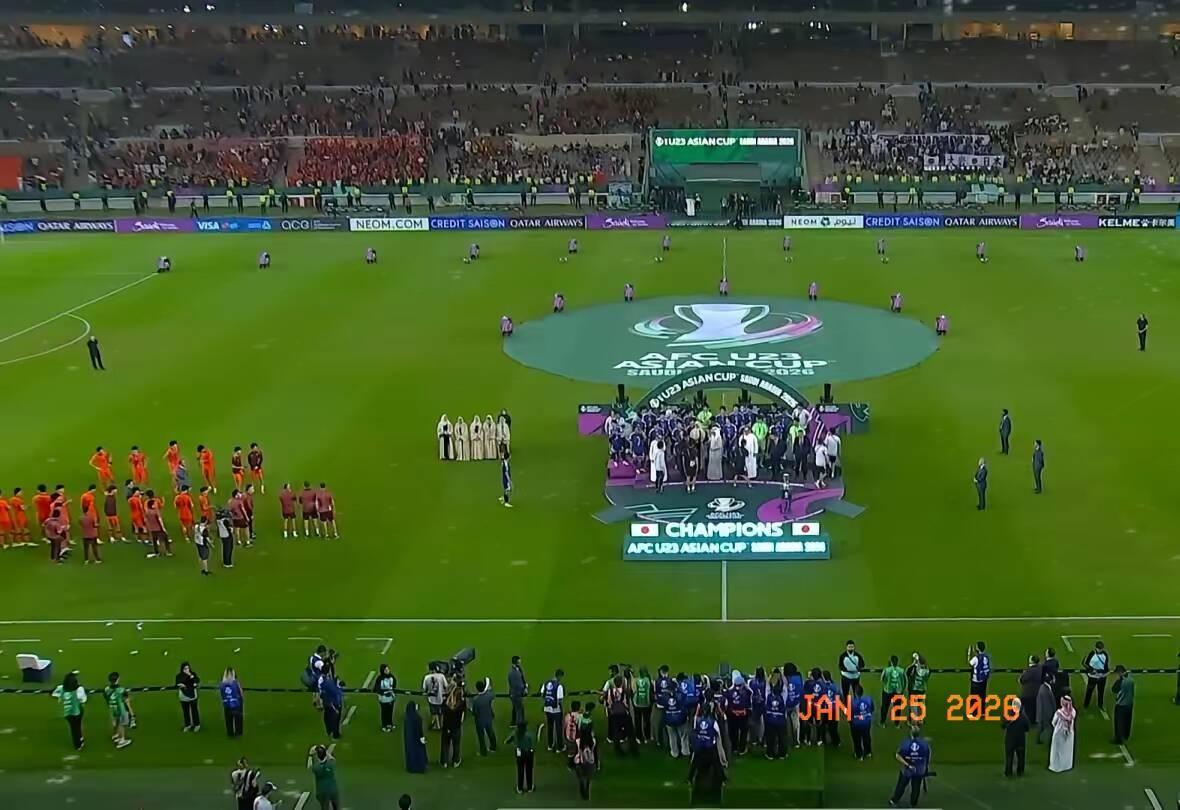 果然球品见人品, 颁奖礼后中国队的表现, 再一次证明了我们这些球员的人品! 虽然0-4输了决赛,但咱们队员全程体面又有格局! 咱们球队领奖结束后,国足小伙子们没有提前退场,就静静在一旁等着,等待着对手领奖。 更让人暖心的是,日本队也主动为中国队列队鼓掌,两队互相鞠躬致敬的画面,成了这场决赛最戳人的风景。这不是装出来的礼貌,是对手实打实的认可,是体育精神最鲜活的样子。 谁能想到啊,这支赛前被划到第四档的队伍,能一路逆袭闯进决赛。这是中国男足国字号时隔22年再进洲际决赛,刷新U23亚洲杯历史最佳战绩,这份突破是真的提气! 赛场上的差距咱得明明白白认,日本队的控球和效率确实更胜一筹,但小伙子们没怂过。门将李昊高接低挡救了好几个必进球,发烧到39度的拜合拉木替补上场还玩命跑,这份拼劲,谁都挑不出毛病。 半决赛拼到加时赛才拿下韩国队,小伙子们腿都跑软了还在咬牙坚持。从小组赛不败出线,到淘汰赛连克劲旅,每一步都是拼出来的,没有半点运气成分。 国家体育总局和中国足协第一时间发了贺信,夸球队实现了竞技成绩和精神文明双丰收。黄健翔也直言,这个亚军是超极限的成绩,比某些所谓的“胜利”更有价值。 赛场边的球迷从头喊到尾,看着小伙子们拼到最后一刻,心里又心疼又骄傲。有人举着“你们尽力了就是英雄”的牌子,这份双向奔赴的热爱,比比分更动人。 想想张伟丽跨级挑战虽败犹荣,C罗主动纠正点球判罚赢得尊重,竞技体育从来不只看输赢。咱们的小伙子用行动证明,输球不输人,这才是中国足球该有的骨气。 这批年轻人让我们看到了希望,现在的差距是动力不是压力。只要保持这份品格和拼劲,假以时日,中国足球总会迎来属于自己的高光时刻。 各位读者你们怎么看?欢迎在评论区讨论。 国足观感