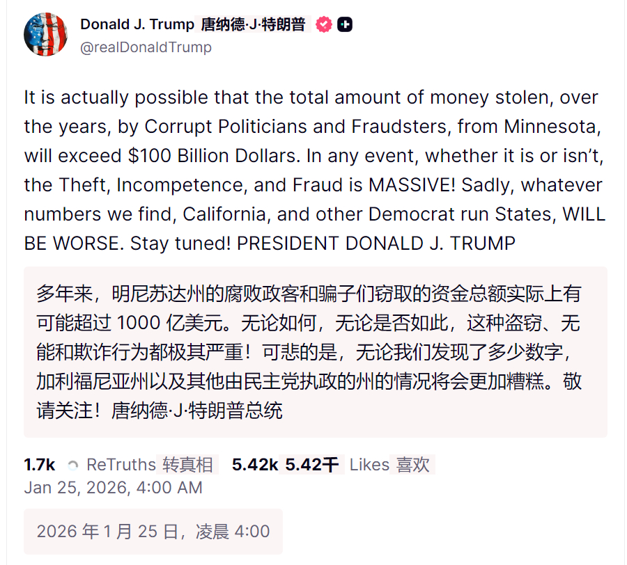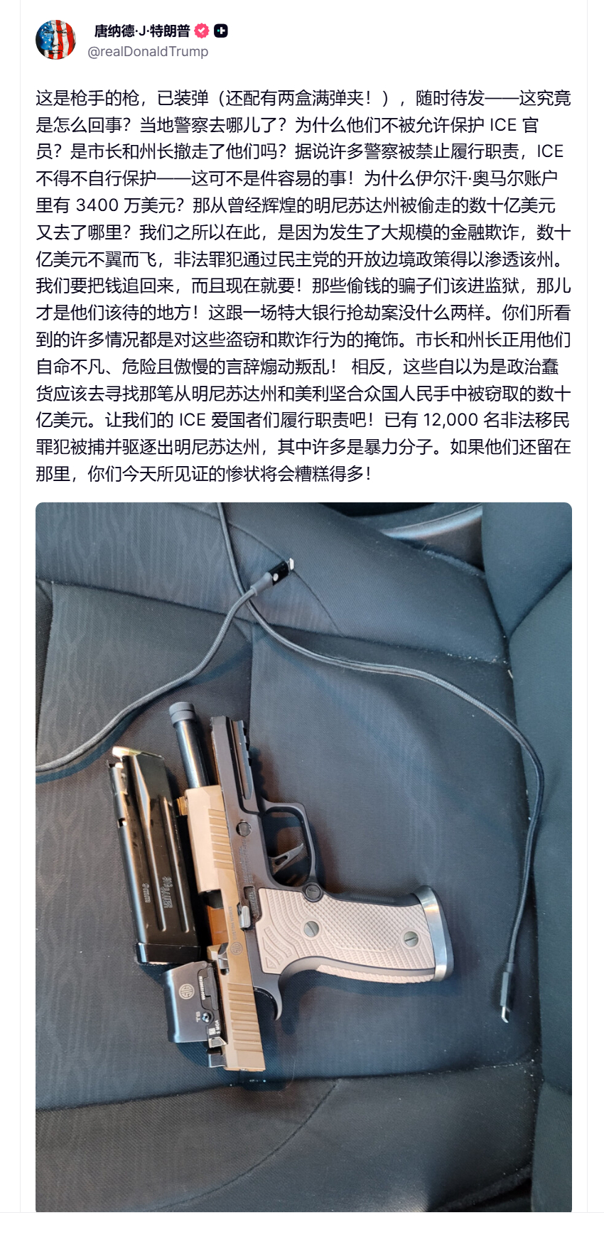 🔻特朗普的态度也很简单:跟民主党混就是该死,持枪的美国人更该死了,人人持枪人人该死。被 ICE 打死的都是活该。🔻via bnonews热点现场 海外新鲜事 美国数十万人严寒中高喊ICE滚蛋