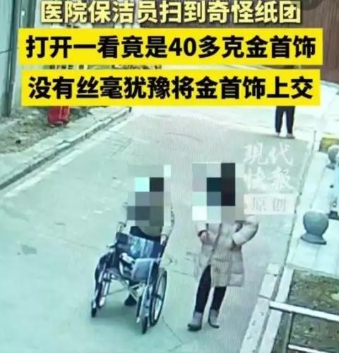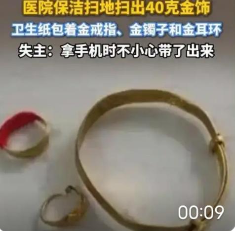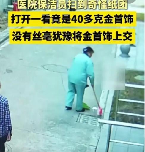 医院保洁扫出5万金饰,分文不取上交!网友:这才是最珍贵的职业底色 谁能想到,一团看似不起眼的卫生纸,里藏着价值五万多元的“天价宝贝”?近日江苏扬州汤汪社区医院的保洁员吴红英,用一个朴素的举动,温暖了无数人的心。 那天下午两点多,吴红英像往常一样打扫影像科走廊,扫到一团卫生纸时总觉得不对劲——“扫了两三次都没扫进簸箕,分量沉得反常”。出于细心,她拆开纸团,瞬间被晃眼的金光惊到:一枚金戒指、一个金镯子、一对金耳环,整整40克足金首饰,按当下金价算,价值超过五万元。 要知道,这可是吴红英近两年的工资总和。换作任何人,面对这样的“意外之财”,难免会有瞬间的动摇。但她没有丝毫犹豫,第一时间掏出手机联系医院后勤主管,只说了句实在话:“肯定是来看病的病人丢的,谁丢了这么贵重的东西不得急坏?假如我的东西丢了也是这个心情。” 就在医院调取监控寻找失主时,市民卜女士急匆匆地赶了过来,满头大汗地询问是否有人捡到金饰。原来这些首饰是她奶奶的,当天陪奶奶来换药时,临时用卫生纸包着塞进口袋,拿手机时不小心带了出来,直到回家才发现遗失。监控画面清晰还原了这一幕:卜女士掏手机的瞬间,白色纸团从口袋滑落,被随后打扫的吴红英发现。 核对款式、重量无误后,金饰完璧归赵。卜女士激动得紧紧攥着吴红英的手,几天后还特地送来锦旗致谢。而吴红英只是腼腆地笑着,重复着那句朴实的话:“这本来就是别人的,我肯定得还。” 这则暖心新闻刷屏后,网友们的评论炸开了锅。有人感慨:“干着最平凡的活,却守着最珍贵的品格”;也有人对比近期另一则新闻——某三甲医院患者遗失项链后,遭遇监控缺失、院方推诿,最终求助无门。两相对比,更显吴红英善举的可贵。 其实在我们身边,这样的反差时刻都在上演。有人捡到财物会主动上交,有人却会顺手牵羊;有人面对诱惑坚守本心,有人却为蝇头小利迷失自我。吴红英的选择,没有惊天动地的誓言,却用最直接的行动告诉我们:善良从不分职业高低,也无关收入多少。 或许有人会说“换我也会还”,但真当五万元——相当于普通打工人一两年积蓄的财物摆在面前时,能做到分文不动、第一时间上交,考验的不仅是道德,更是刻在骨子里的正直。就像网友说的:“不是所有人都能抵御这样的诱惑,所以才更要为吴阿姨的善良点赞。” 在这个节奏飞快、偶尔让人感到冷漠的社会里,正是这些藏在烟火气中的微光,让我们感受到人性的温度。保洁员、快递员、环卫工人……他们干着最不起眼的工作,却常常在关键时刻绽放出最耀眼的光芒。 你有没有过遗失贵重物品的经历?遇到过主动归还的好心人吗?欢迎在评论区分享你的故事,为平凡人的善良点赞转发,让这份温暖传递下去~保洁真相