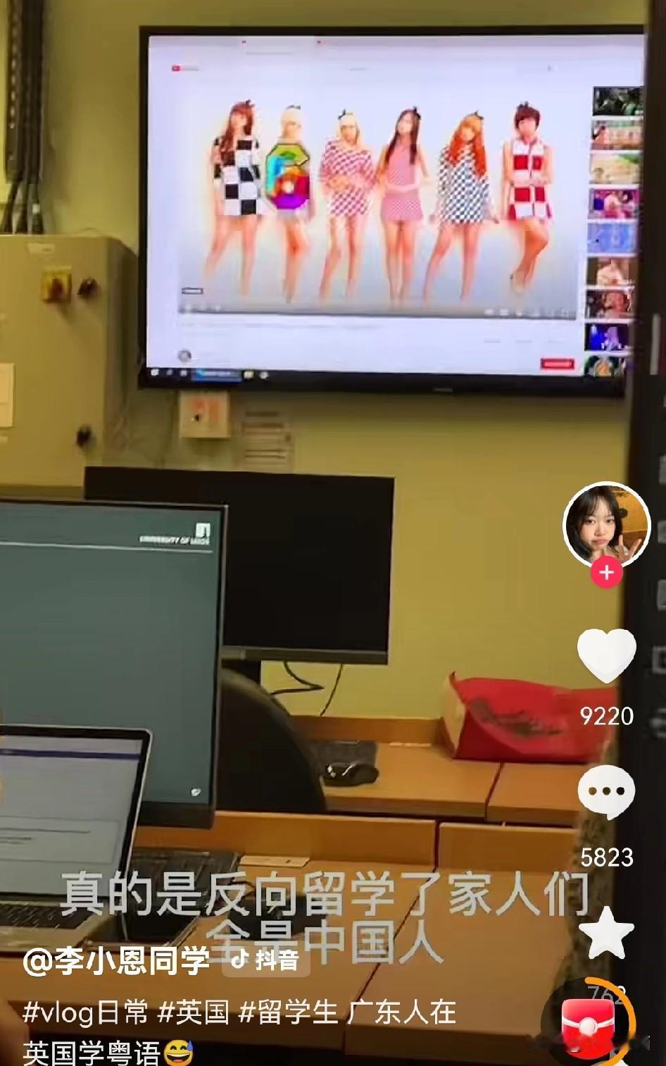 果不其然,有留学生站出来反驳牢A的观点。 当听到她说自己是广东人要到英国留学去学粤语的时候,才发现这哪是反驳,这就是作证。 这位在英国的留学生一直强调牢A并不能代表整个留学生群体,他所说的有片面性。 然后就说起了自己在英国学习粤语的经历,费了九头二虎之力才抢到的课程,课堂上也都是中国留学生,在上课间隙讲台放的竟然是露腿的亚洲女子的画面,这是不是能起到心里暗示不知道,反正能跑到英国学习粤语,这也是让人无语了。