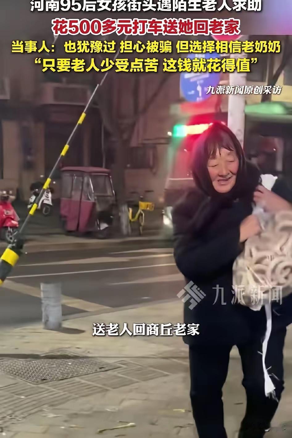泪目了!河南,女子出门给朋友过生日,到餐厅门口时突然被一老奶奶拦住,老人冻得嘴唇发紫,小声问能不能给她买一碗泡面,女子有点担心,但看着老人头发花白、一脸无助,她又打消了顾虑。 眼瞅着那位老奶奶在寒风中冻得嘴唇青紫、连张口求助都显得战战兢兢,女孩二话没说,直接将老人搀扶进了旁边的拉面馆,甚至豪掷500多块钱打车护送她返乡。 这位女子名叫小雅,当天特意换上好看的裙子,手里拎着包装精致的生日礼物,满心欢喜赴朋友的生日之约。河南初冬的风凛冽刺骨,刮得人脸颊生疼,她裹紧外套快步赶路,刚到餐厅门口,佝偻的身影就拦在了面前。老人头发花白蓬乱,裹着一件薄得透光的旧棉袄,领口磨得发毛,袖口破了个洞露出冻得通红的手腕,裤脚卷着,露出脚踝上皲裂的皮肤,脚上的布鞋沾满泥土,鞋尖还开了胶。 小雅扶着老人慢慢走进拉面馆,刚进门就喊来服务员,语气急切:“来一大碗牛肉拉面,多放汤多放菜,再加两个卤蛋,一份热乎的凉拌菜。”她怕老人饿急了吃太快不舒服,又特意叮嘱“面条煮软一点”。趁面没上桌的间隙,她倒了杯滚烫的热水递过去,老人双手捧着水杯,指尖的红肿和裂口格外显眼,她小口喝着水,嘴唇的青紫才渐渐褪去些,眼里的惶恐也少了几分。 拉面端上桌时热气腾腾,香气瞬间散开。小雅帮老人搅拌均匀,又把卤蛋剥好放进碗里,轻声说:“奶奶,快吃吧,热乎的垫垫肚子。”老人拿起筷子的手不停颤抖,夹起面条慢慢往嘴里送,眼泪却顺着满脸的皱纹往下淌,滴进碗里。她哽咽着说自己姓陈,今年78岁,家在邻县农村,孙子前段时间感冒发烧一直不好,她揣着家里仅有的几百块钱进城买药,路上挤公交时钱被偷了,还坐错了车,迷迷糊糊在城里转了两天,饿了就捡路边别人剩下的食物,冷了就缩在避风的墙角,实在撑不住了,才敢向路人开口求助。 听着老人的诉说,小雅鼻子一酸,掏出手机给朋友发消息说明情况,朋友立刻回复让她安心照顾老人,生日宴大家都理解,还让她有需要随时开口。吃完面后,小雅问清老人家里的具体地址,得知离市区有近百公里,坐公交要转三次车,全程得大半天,老人年纪大了根本折腾不起。她看着老人疲惫不堪的模样,没丝毫犹豫,打开手机叫了辆网约车,跟司机师傅说明老人的情况,师傅当即表示会放慢车速,安全送老人到家。 打车费用核算下来要500多块,小雅没有丝毫迟疑,直接付了钱。搀扶老人上车时,她怕老人着凉,把自己的外套脱下来盖在老人身上,还调整了座椅让老人坐得舒服些。一路上,老人靠在座椅上慢慢睡着了,眉头却依旧皱着,想来还在惦记家里的孙子。小雅时不时帮老人掖掖外套,怕她被车里的空调吹着凉,还跟司机师傅轻声聊天,生怕吵醒老人。 两个多小时后,车子终于开到老人家门口,远远就看到一个小男孩趴在院墙上张望,正是老人的孙子。看到奶奶回来,小男孩立刻跑过来扑进老人怀里,哭喊着“奶奶你去哪了”。老人抱着孙子泣不成声,拉着孩子的手对着小雅不停鞠躬,嘴里反复说着“谢谢你闺女,你是我们家的大恩人”。小雅连忙扶起老人,又从包里掏出200块钱塞到老人手里,让她给孩子买点营养品和药,老人推辞半天,实在拗不过才收下。 小雅看着祖孙俩平安团聚,才放心坐车返程,朋友的生日宴早已散场,但她心里满是踏实。后来这件事被朋友发到网上,很快引发热议,网友们纷纷为小雅点赞,说她既有警惕心又有善心,难能可贵;也有人心疼老人的遭遇,感慨幸好遇到了好心人;还有人说500多块钱和一件外套,藏着最珍贵的善意。 小雅后来接受采访时说,当时没想太多,只觉得老人那么大年纪在寒风里求助,肯定走投无路了,换做谁都会伸手帮一把。她的举动没有惊天动地,却用最朴素的善意温暖了老人的困境,这份发自内心的善良,正是世间最动人的力量。 各位读者你们怎么看?欢迎在评论区讨论。