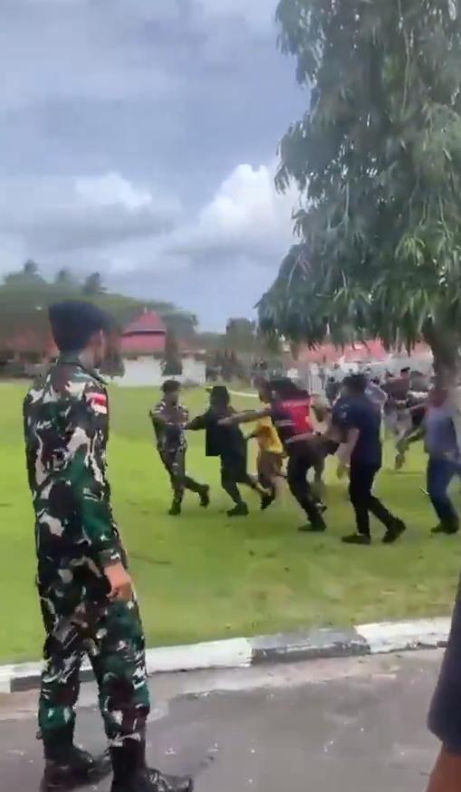 北苏拉威西省塔劳群岛(与印尼接壤)的居民于周五(1月24日)冲击了印尼海军基地TNIAL,并与士兵发生冲突。据报道,此前几名海军人员醉酒后殴打了一名当地教师。抗议者还割断了巡逻艇KAL Pulau Karakelang的系泊绳,该艇随后漂流并搁浅(第二个视频)。海军基地指挥官已就此事道歉,至少五名涉嫌参与袭击的士兵已被拘留