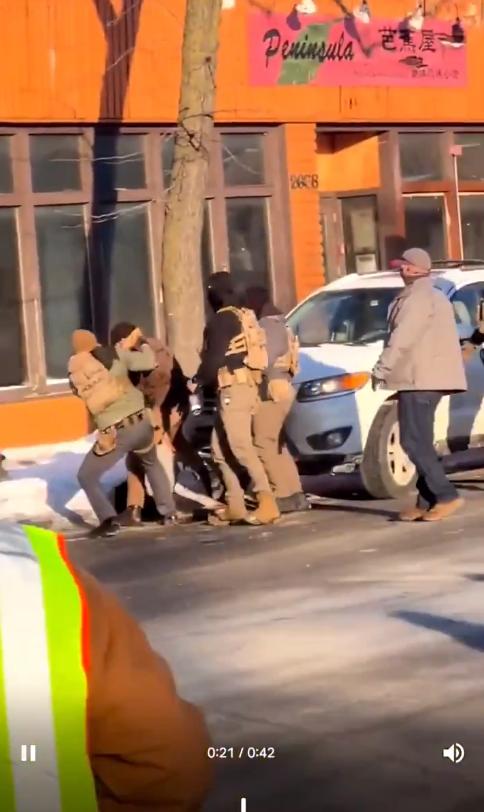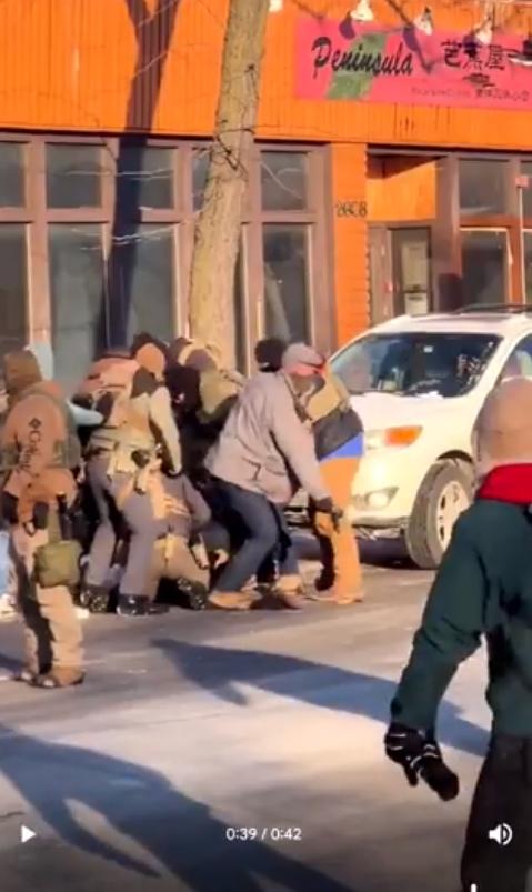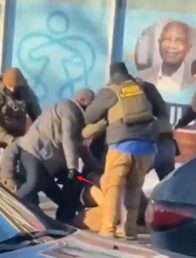 2026年1月24日发生在明尼阿波利斯的一起致命枪击案的增强图像。在这次移民执法行动中,边境巡逻队和移民及海关执法局(ICE)的特工击毙了一名37岁的美国公民,这是该市三周内发生的第二起类似事件。 对第一张图像的分析显示,在一辆现代汽车附近发生了一场扭打,一名特工似乎从一名身穿米色夹克的男子手中缴获了一把黑色手枪。第二张图像显示,这把枪是一把改装过的SIG Sauer P320,配有加长弹匣和瞄准镜,这表明该男子在枪击发生前不久已被缴械。 这一说法挑战了最初关于武装威胁的说法,因为枪击事件后的视频显示,特工们正在搜寻枪支,其中一人确认了该男子持有枪支。此事引发了截然不同的反应,包括特朗普政府对特工的支持,以及当地民众要求将ICE驱逐出明尼阿波利斯的呼声。