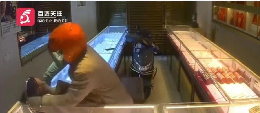 福建平潭这起金店被抢案太让人震惊了!2026年1月18日21时40分,海坛街道一金店遭劫。监控里,戴头盔的嫌疑人趁卷帘门关闭从门缝钻进,殴打、电击店主韩女士,还把她锁进卫生间,用冰箱堵门,一整排柜台价值约两百万的商品全被拿走,韩女士肋骨都被打骨裂。 好在警方给力,1月22日就抓获了34岁的男子林某和37岁的女子刘某。不过目前被抢的黄金制品还没找到,警方还在全力搜寻。经办民警为了这案子几乎没睡觉,必须给他们点赞!希望能早日找回赃物,让受害者得到应有的补偿。