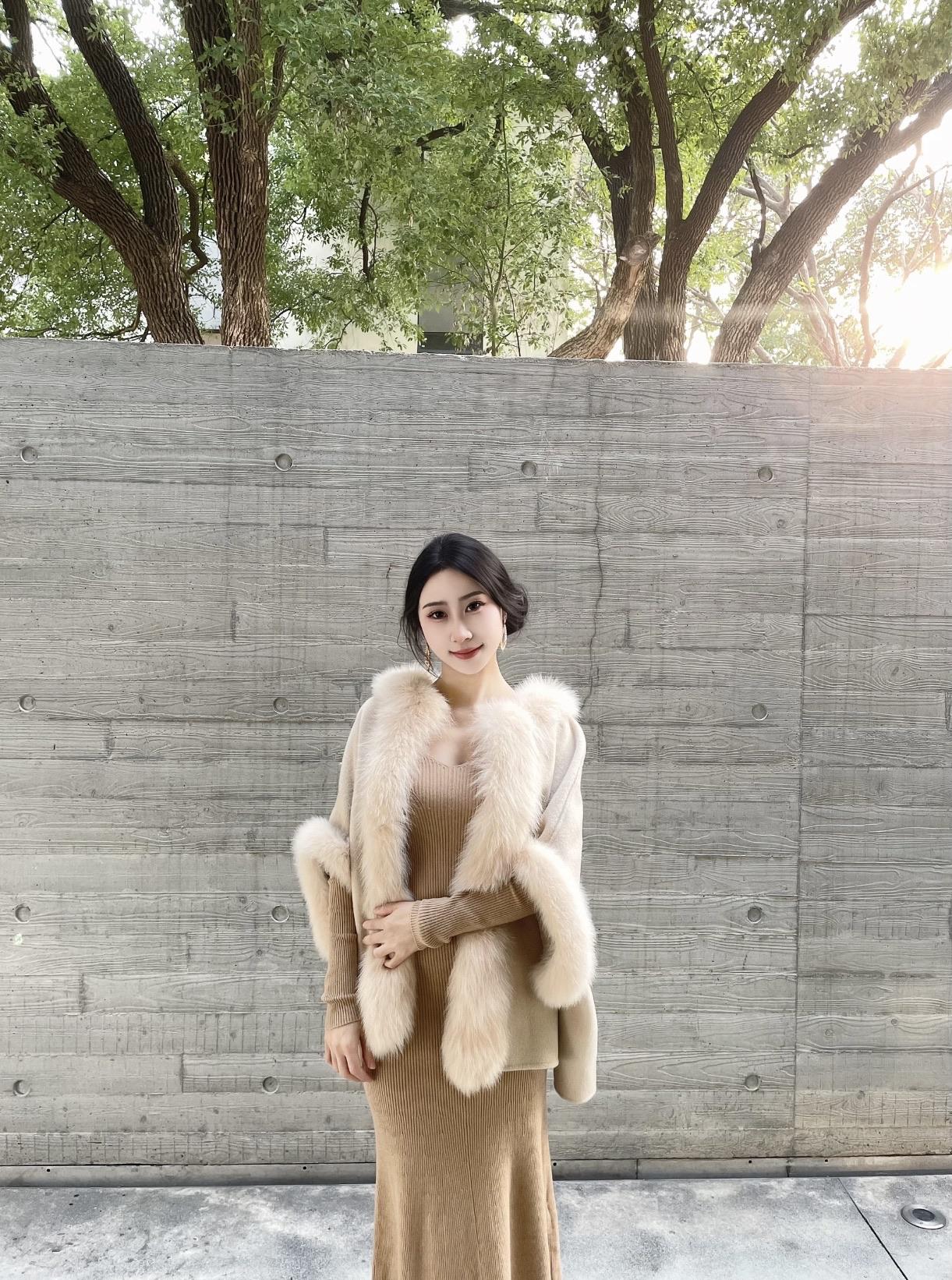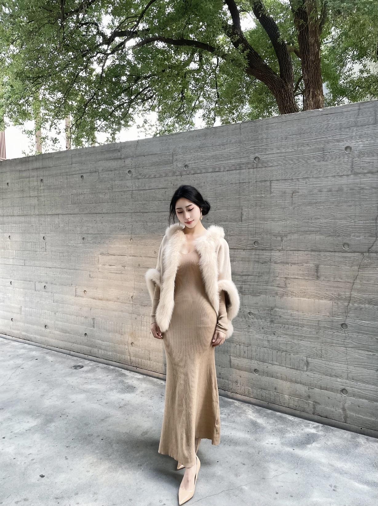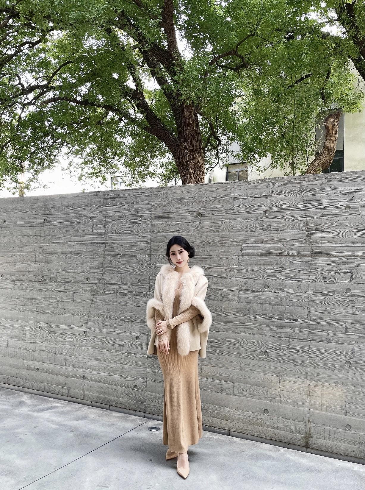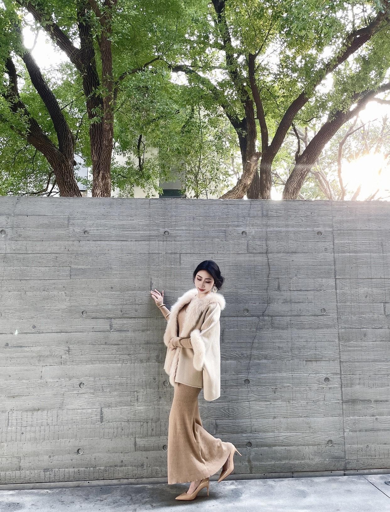 少女风写真照秋日穿搭写真指南:毛绒外套+米色长裙,温暖又时尚!