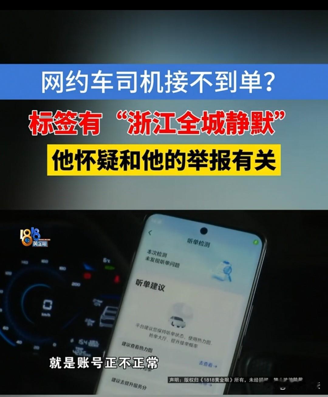 浙江宁波,开网约车的袁先生早上一个客都没接到,他感觉可能是自己投诉过平台,说对方乱罚款又偷税漏税,才造成了这样的结果。不过客服说,他的系统显示正常,不存在异样。但袁先生发现,界面有一行小字写着“全程静默”,大致的意思就是被拉黑了,可客服还是说账号处于正常状态。现在,袁先生希望平台退还自己购买的418元的免佣卡,当然,更希望记者介入后帮忙解开限制,自己毕竟靠开网约车挣钱养家。 袁先生在1月20日的时候,天不亮就开车出门了,想多接几单,多挣钱。 可是出门后,近一个小时,一个单都没有接到。 袁先生有点着急了,每天的生意旺季就是早上,上班高峰期、上学高峰期,这个时候挣不到钱,那今天基本上收入要减一大半。 他反复查看自己的平台界面,一切都显示正常,并且还听单检测了,没有检查出异样。 他赶紧联系客服,问问是什么情况,自己再这样下去,可要着急坏了。 客服告诉他,你的账号正常,没有出现异样,耐心一点,会有单进来的。 可是等了一上午,还是一个单都没进来。 最后他就在反思自己,哪里做的不够好,才会遭到这样的结果呢? 他突然想到,之前投诉过平台。他们有时候乱罚款,对自己造成了影响,觉得不合规,便向相关部门投诉过。后来自己一个星期就要买418元的免佣卡,一个月就要花一千多买免佣卡,他希望对方给自己开发票,但是对方没有,他也向相关部门进行过投诉。 所以袁先生最后得出一个结论,就是因为自己投诉他们,他们就有意针对自己。 所以他就请了记者,帮忙看看到底怎么回事,能不能帮忙解开。 可是客服的反馈还是说账号是正常的,不存在袁先生所说的这回事。 不过,袁先生发现,自己的界面下方有一行小字,写的是全程静默。这不就是把自己拉进了小黑屋吗?这哪里还能够接到单呢?因此,他赶紧告诉客服,就是这里的问题,希望他们给出反馈,要怎么弄才能够解开。 但客服还是说正常的,不用多虑。 袁先生有点着急了,自己也反思了,也发现了界面上的异常,怎么还说正常呢?这分明就不正常呀。 自己一天能够跑个四五百,断了这笔钱,自己该如何生活?自己这辆车也是买来跑网约车的,花了几十万,现在车子成了摆设,算进算出都亏大了,关键以后的生活来源也就跟着断了。 他赶紧请记者帮帮忙,诉求就是要么把自己购买的418元的免佣卡退给自己,当然,更希望平台能够帮自己解开限制,能够正常接单。 记者再次联系到客服,表明了身份,并且也替袁先生讲述了他的心声,希望能够把账号解开。 最后,客服也表示会先调查再解决,可能事后也会给袁先生解开账号。 不过网友们就说,你去端着别人的碗,怎么还去砸别人的锅啊?你投诉人家,你就没想过接下来会发生什么吗? 但也有人说这样不合理,是该投诉,不能够亏待自己,毕竟跑网约车也是辛苦钱,不能被压榨。 本案中,平台若因司机投诉便通过“全程静默”限制其正常接单,违反《民法典》第五百零九条第一款规定:当事人应当按照约定全面履行自己的义务。 平台与司机间成立服务合同关系,应依约为司机提供正常接单的服务条件,不得无故设置交易障碍。 其实什么事情都不是绝对的对与错,只是双方站的角度不一样而已。 平台要罚款,自然有他们罚款的理由,它作为管理方,出台的方针是针对全部的网约车司机,肯定有些制度会影响到一些人的利益,当然,这也是管理者的不易之处,确实不能满足所有人,作为司机,要适当谅解,不要内耗,在自己接受的范围内去适应平台,如果真的适应不了,那就换一个呗。 对于对方偷税漏税也是一样,对方真的有此行为,肯定是不对的,但是也可以匿名去举报,干嘛要实名举报呢?这不是给自己造成了麻烦。 对于此事,大家如何看?素材来源于1818黄金眼。