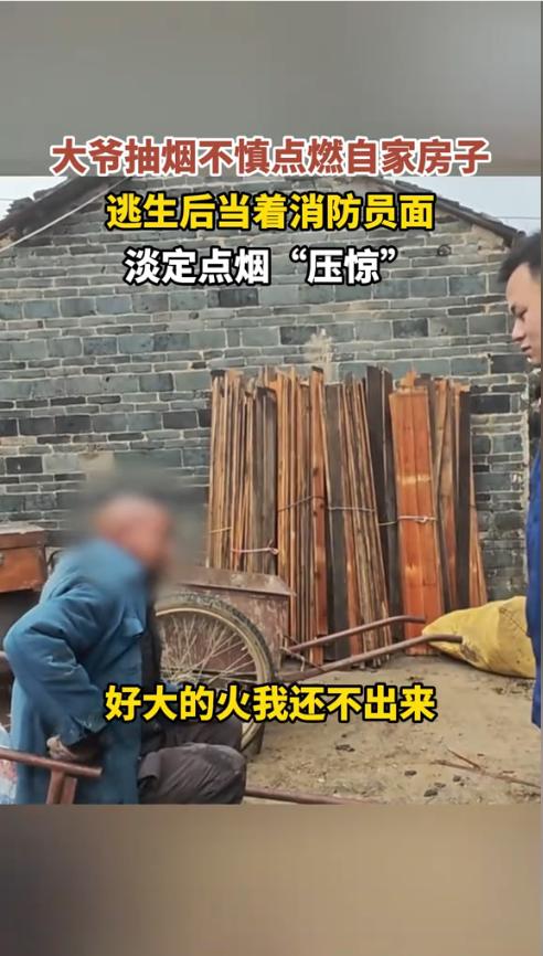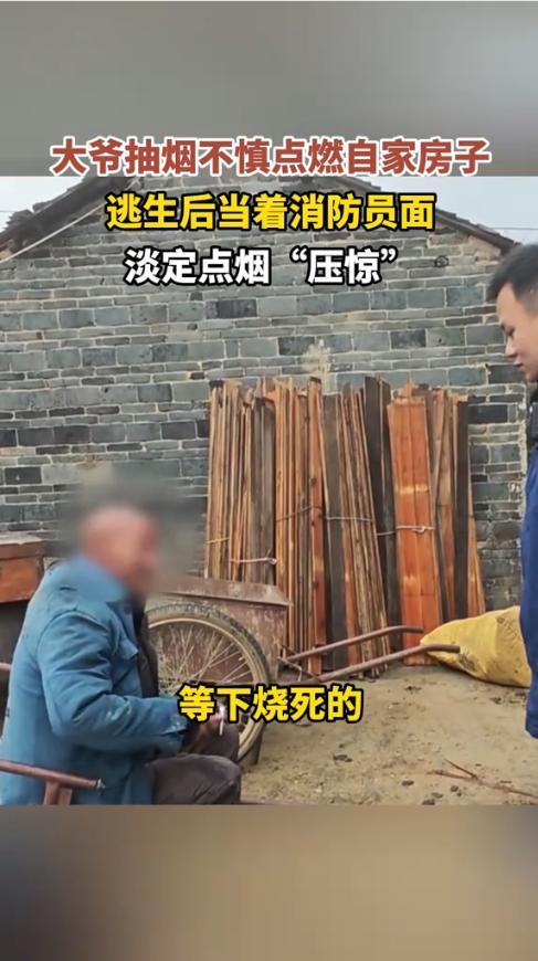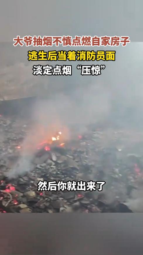 “哭笑不得!”近日,江西吉安,一大爷在家抽烟后,随手将烟头丢到了身后,没想到直接引燃了杂物,见火势太大,自己处理不了,大爷直接淡定向屋外走去。火势扑灭后,消防人员随后对大爷进行教育。没想到大爷的回答竟直接让消防人员顿感无语。网友:大爷终究是大爷! 进入冬季后,天气干燥,成为火灾高发期,所以用火时一定要小心,尤其是抽完烟后的未熄灭烟头,如果随意丢弃,很容易引发火灾。 据媒体1月25日报道,这天下午,65岁的刘大爷独自在家,像往常一样坐在客厅抽烟。抽完后,他看烟头似乎快灭了,便随手一扔,落在了墙角堆着的旧衣物和纸箱上,自己转身去里屋忙活,完全没放在心上。 没过多久,刘大爷闻到一股烧焦的味道,转头一看,才发现墙角已经燃起了明火,火势借着干燥的衣物和纸箱迅速蔓延,很快就烧到了屋顶。见火势太大,刘大爷赶紧往外跑,出门后才想起喊邻居帮忙,邻居见状立刻拨打了119报警电话。 灭火后,消防人员找到刘大爷,对他进行批评教育——“抽完烟就丢到那里,然后就烧起来了,然后你就出来了”,本意是描述一下事情经过,没想到大爷反驳到“我不跑不烧死了吗”,随后又点了一根烟压压惊。 由此可见,冬季防火需格外注意,抽烟后一定将烟头彻底熄灭再丢弃,否则随手乱扔很有可能引着易燃易爆物品。 信息来源:《大爷抽烟不小心把房子烧了,逃生现场当着消防员的面,又淡定点烟“压惊”抽烟消防