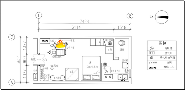 2.火灾防范意识和事故应对处置能力差。屋主对锂电池充电的危害性没有足够认识和警惕,存在侥幸心理,长期在家充电。该建筑只有一个进门,设置了两道门,当事人睡前用铁锁将门反锁,两辆电动自行车停放于入门左侧。火灾发生后,烟气迅速蔓延,封堵门口,当事人无法第一时间拿到钥匙打开门锁逃生,致使2名人员因吸入烟气过多在床上中毒昏迷死亡,1名人员逃至后窗位置无法逃生后吸入有毒高温烟气死亡。