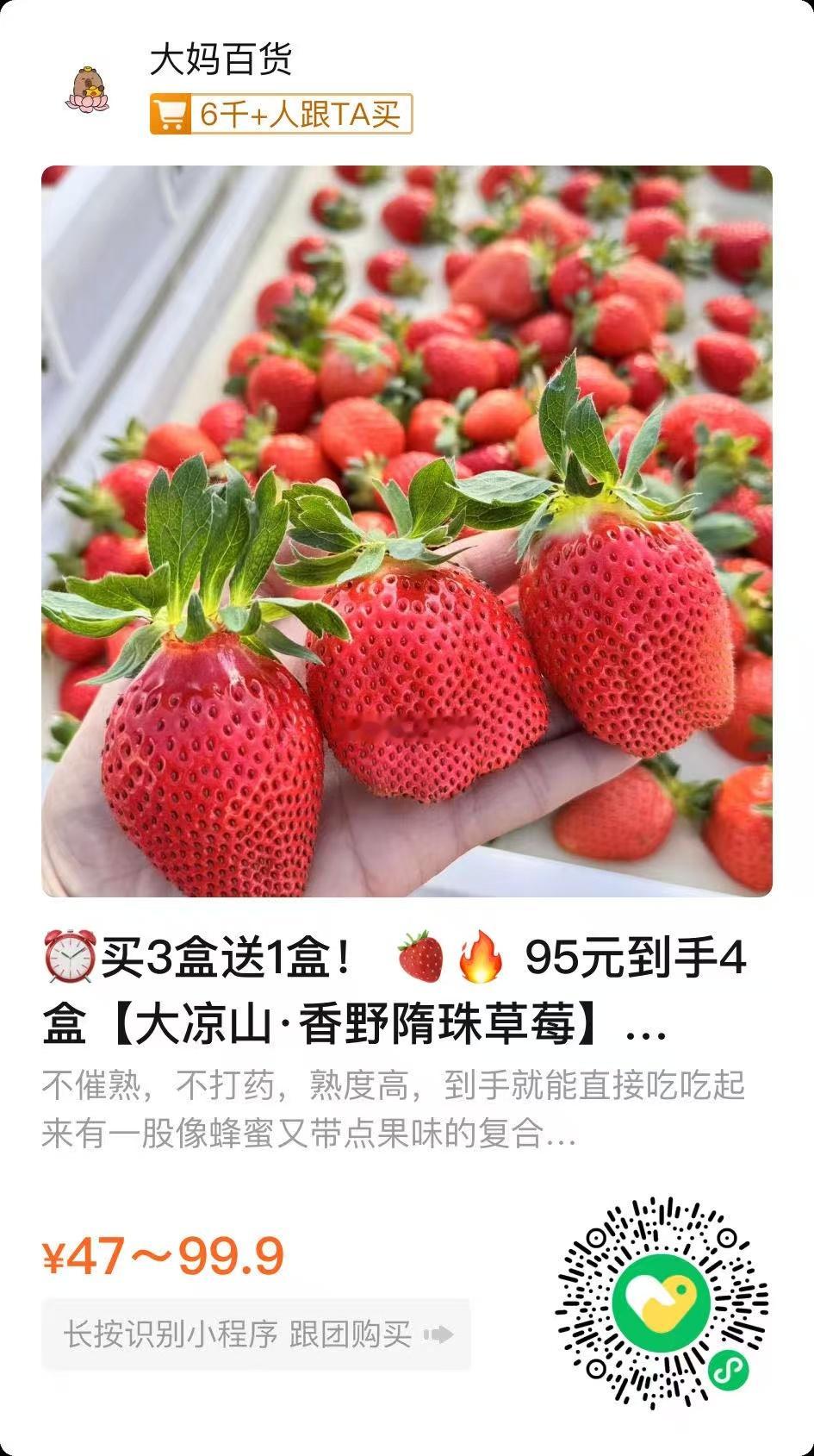 别看着草莓长得身段妖娆艳丽多姿,一副让你吃完不知天地为何物的模样…但是没吃我团里的草莓好吃,甜倒是也甜的,但后味及其寡淡,根本没有草莓本身的本味和香味~自从大妈开团卖草莓,就再也不想临幸别人家的草莓了~快过年了,大妈让小助理给大家开了点小福利,订阅就有U慧拿哦~别错过~