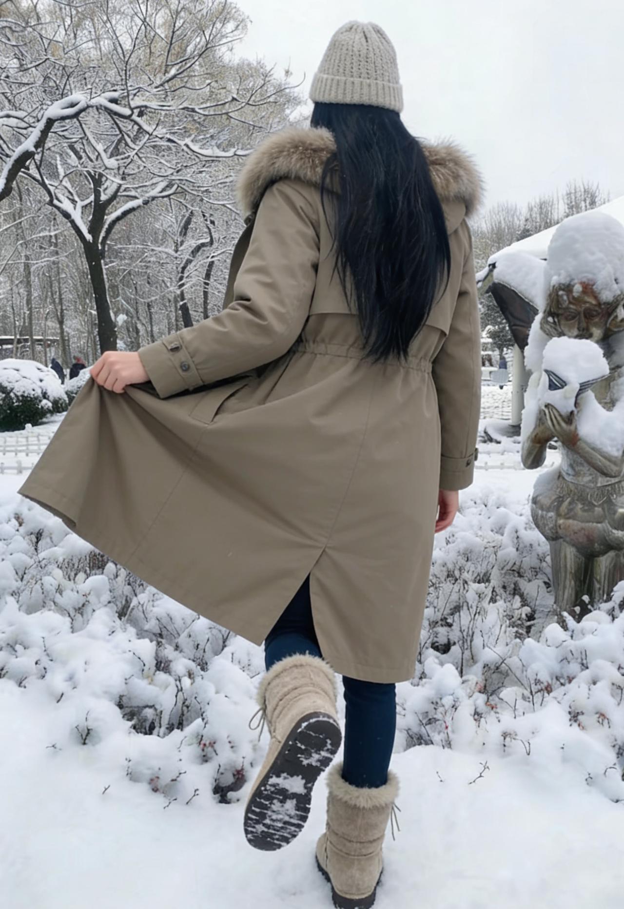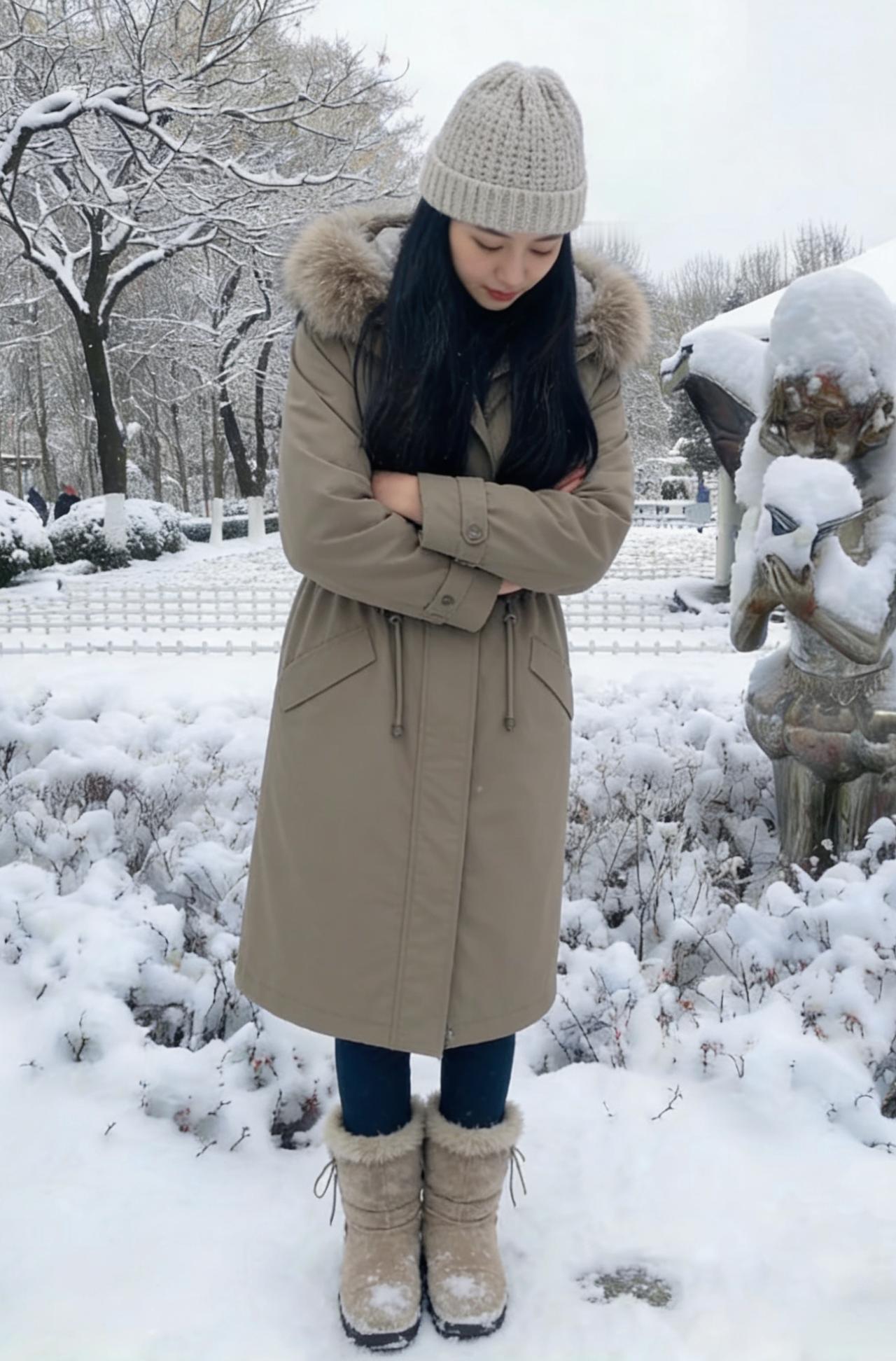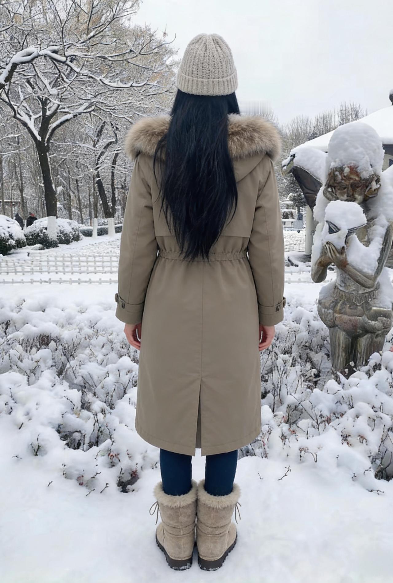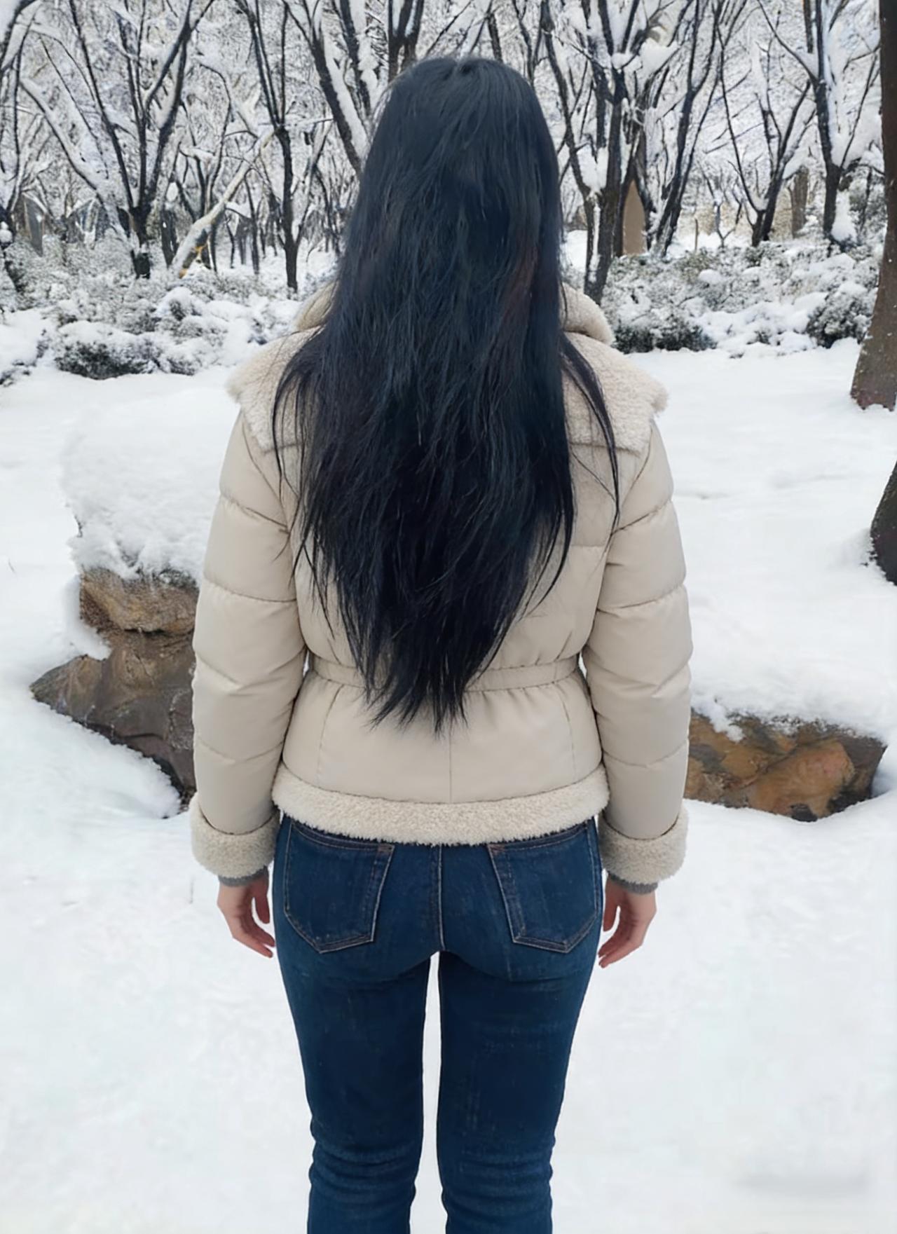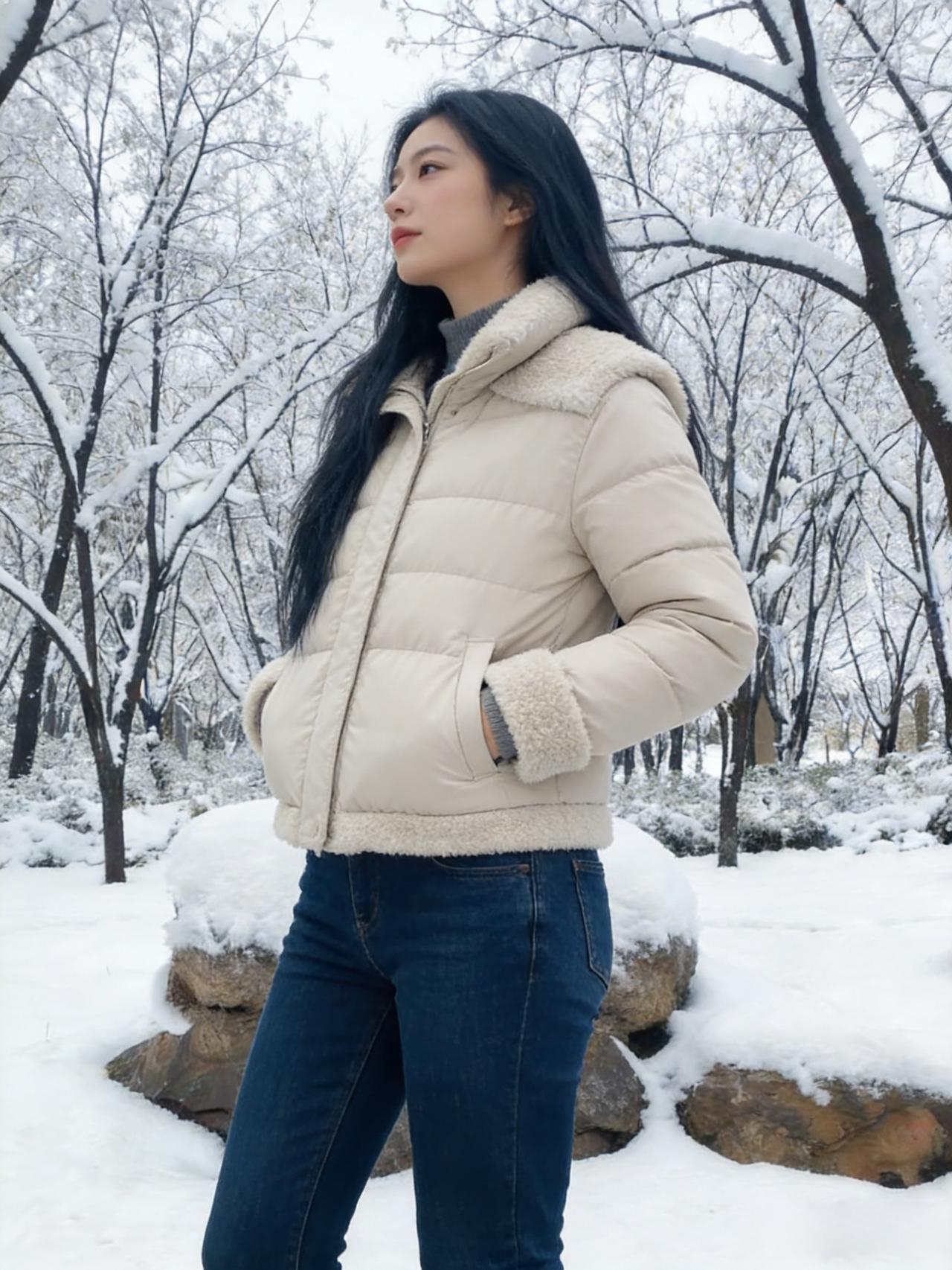 她走进雪的领地,像一朵移动的云 白与白相融,黑长发是云边的墨痕 羽绒服的绒毛沾了雪粒,像星星落上去 牛仔裤碾过雪地,留下浅浅的辙 ~ 雪在她的肩头堆积,又被体温化开 她的脚步轻,怕惊扰了雪的梦 树影在雪地上摇晃,和她的影子纠缠 风把她的发吹向一侧,露出脖颈的弧度 ~ 她抬手拂去肩头的雪,动作轻缓 像抚摸一只蜷睡的猫 雪粒从指尖滑落,坠回雪地的怀抱 发出细碎的声响,是雪与她的私语 ~ 这片雪场因她有了鲜活的呼吸 她的存在,让冷寂的雪有了故事 不是孤冷的冬,是带着暖意的相逢 雪吻过她的发,她吻过雪的凉 ~ 背影对着茫茫雪色,像在和冬对话 说些关于温暖,关于等待的话 雪听懂了,便落在她的衣角,不肯离去 成了她与冬之间,最温柔的契约