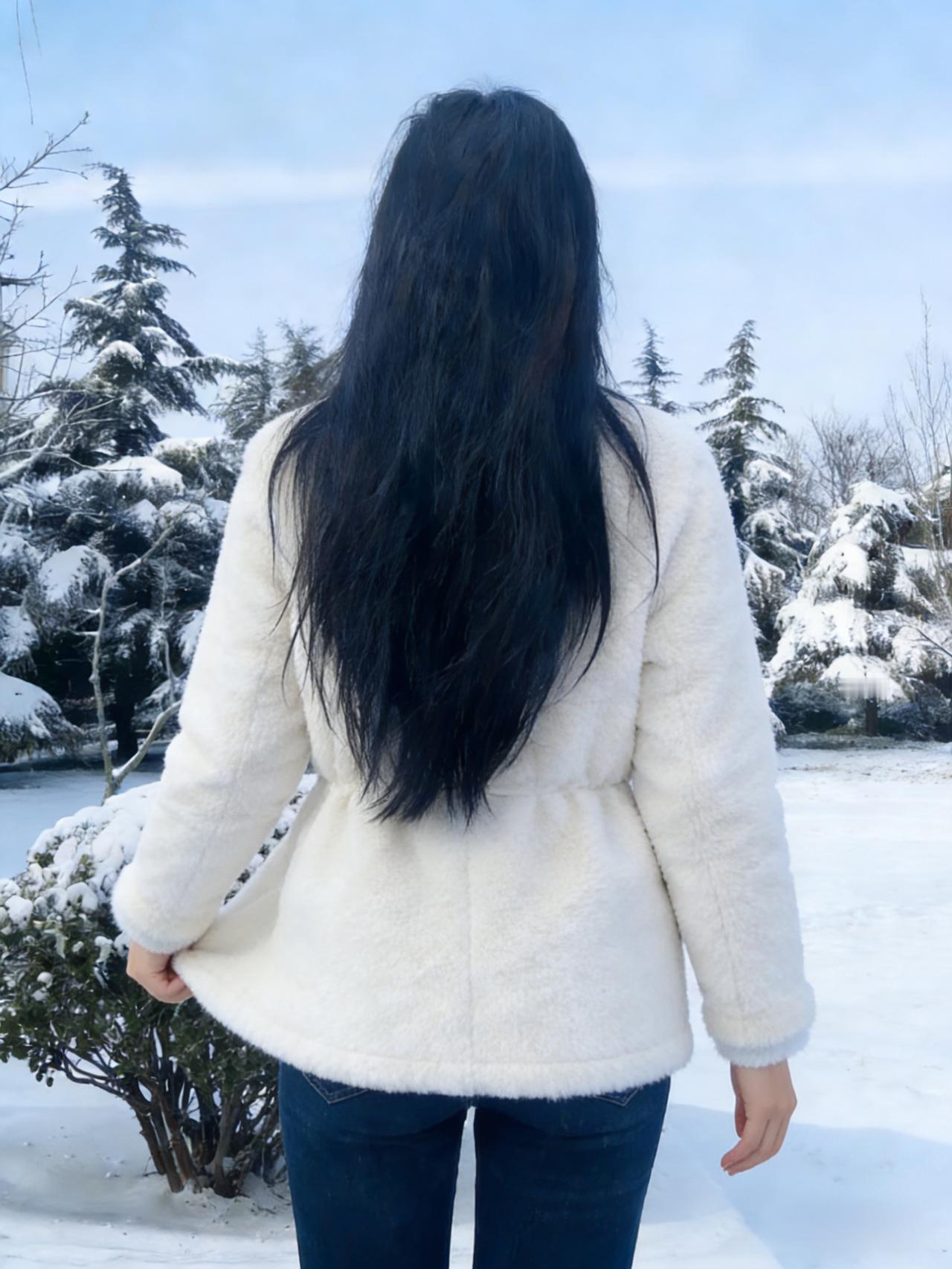她走进雪的领地,像一朵移动的云 白与白相融,黑长发是云边的墨痕 羽绒服的绒毛沾了